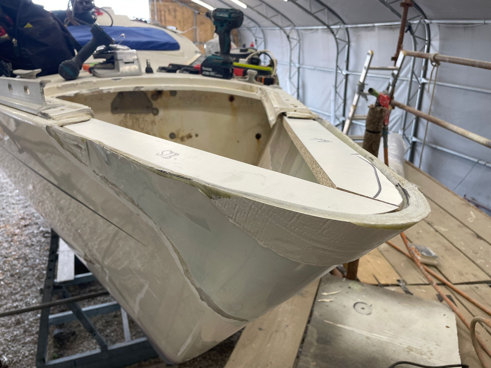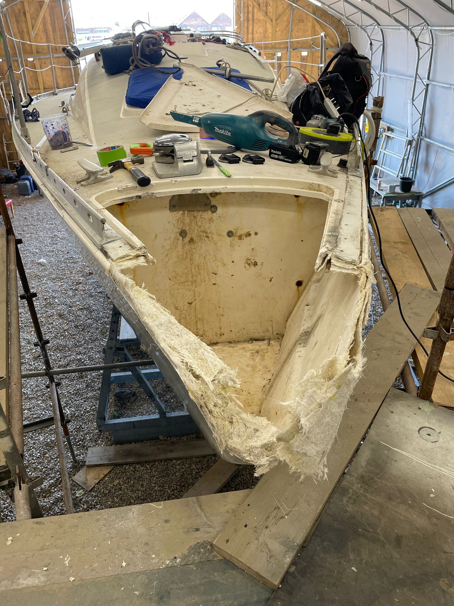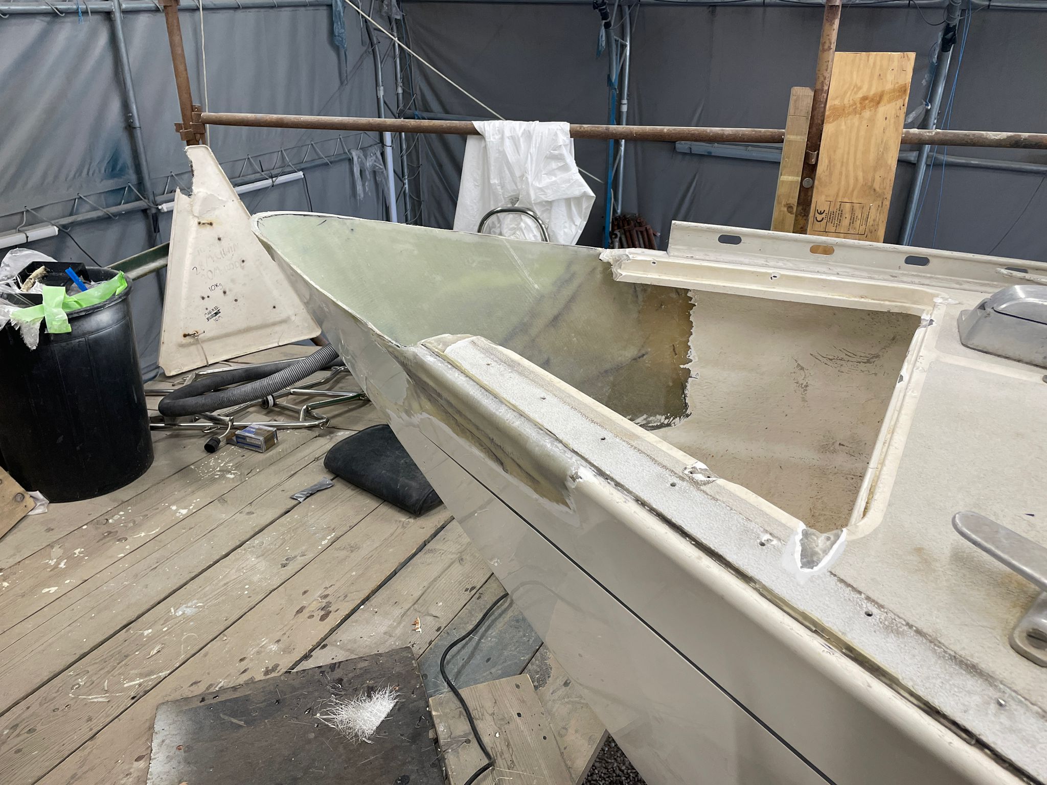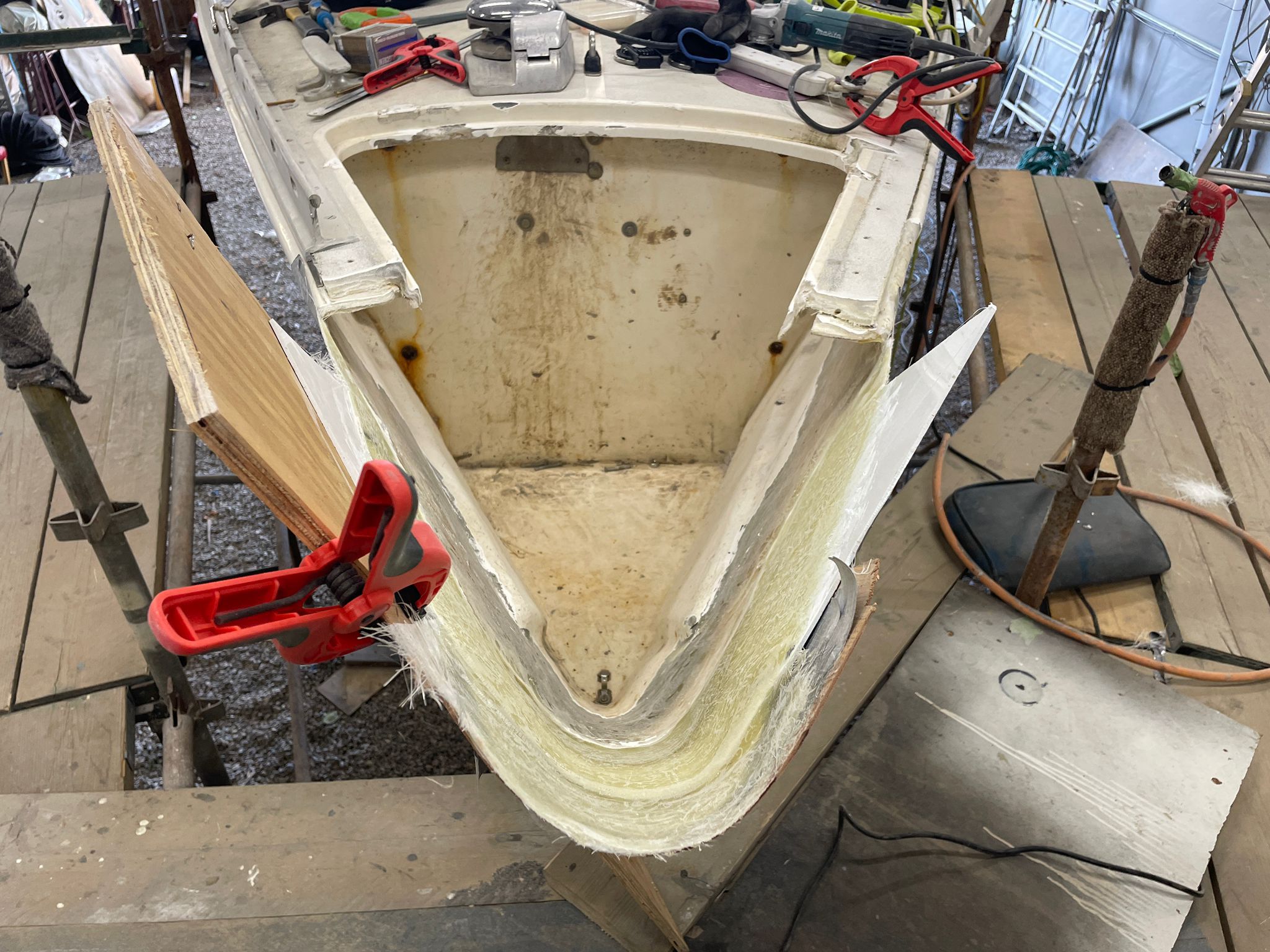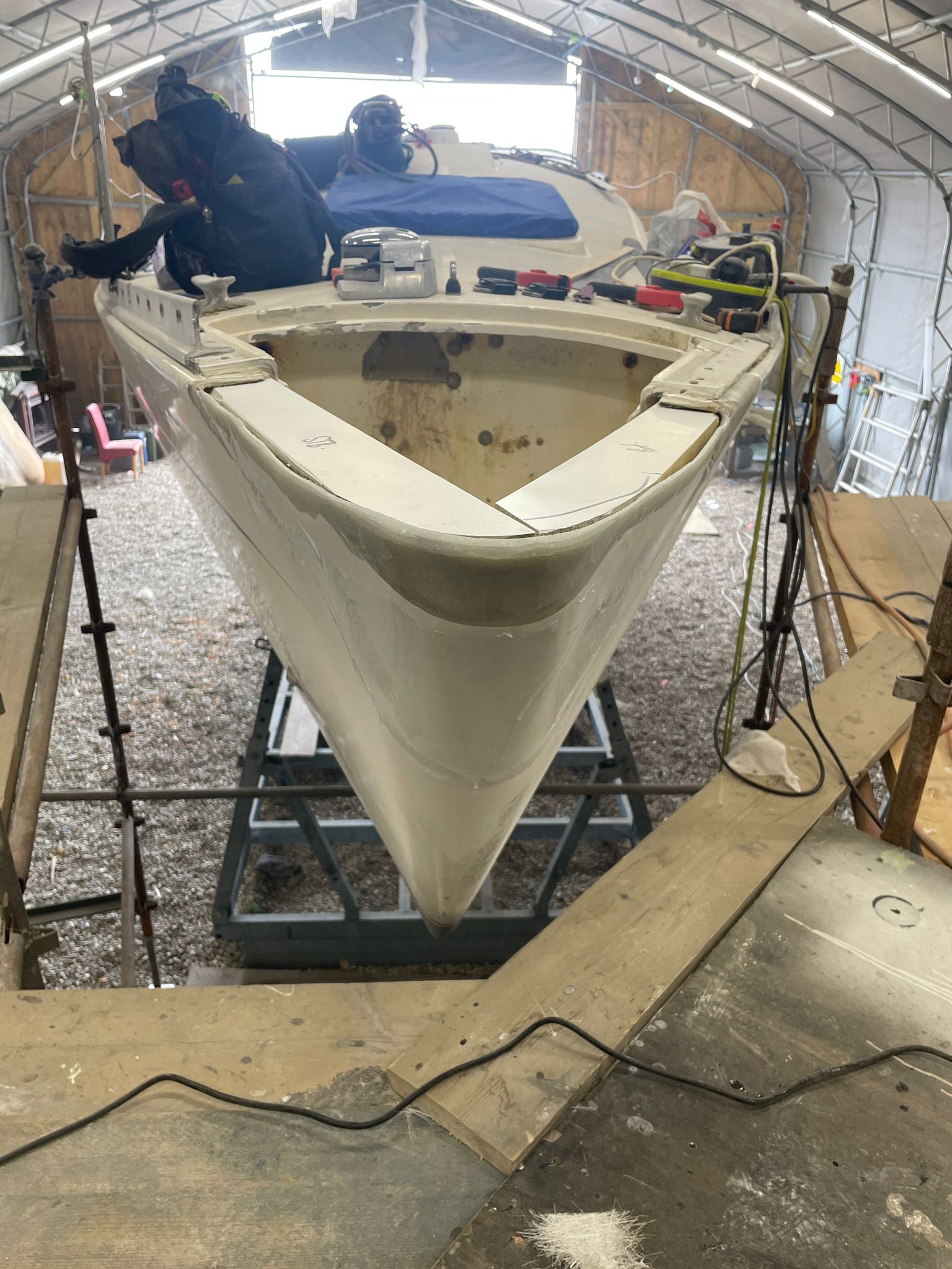 The hull repairs are coming along nicely and we are almost ready to start forming the deck.
