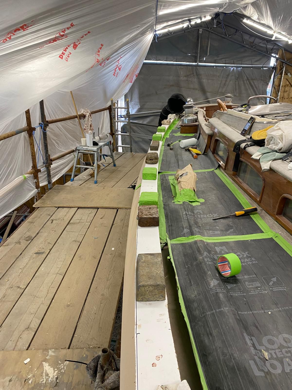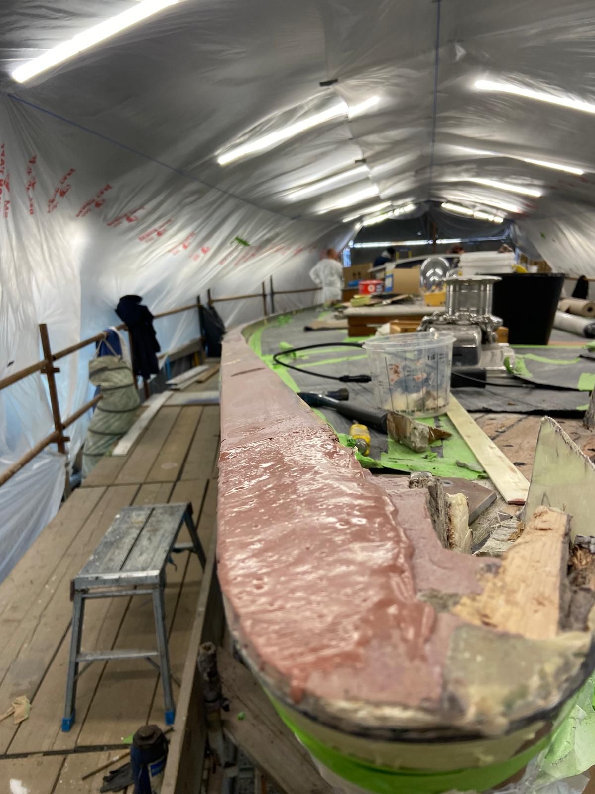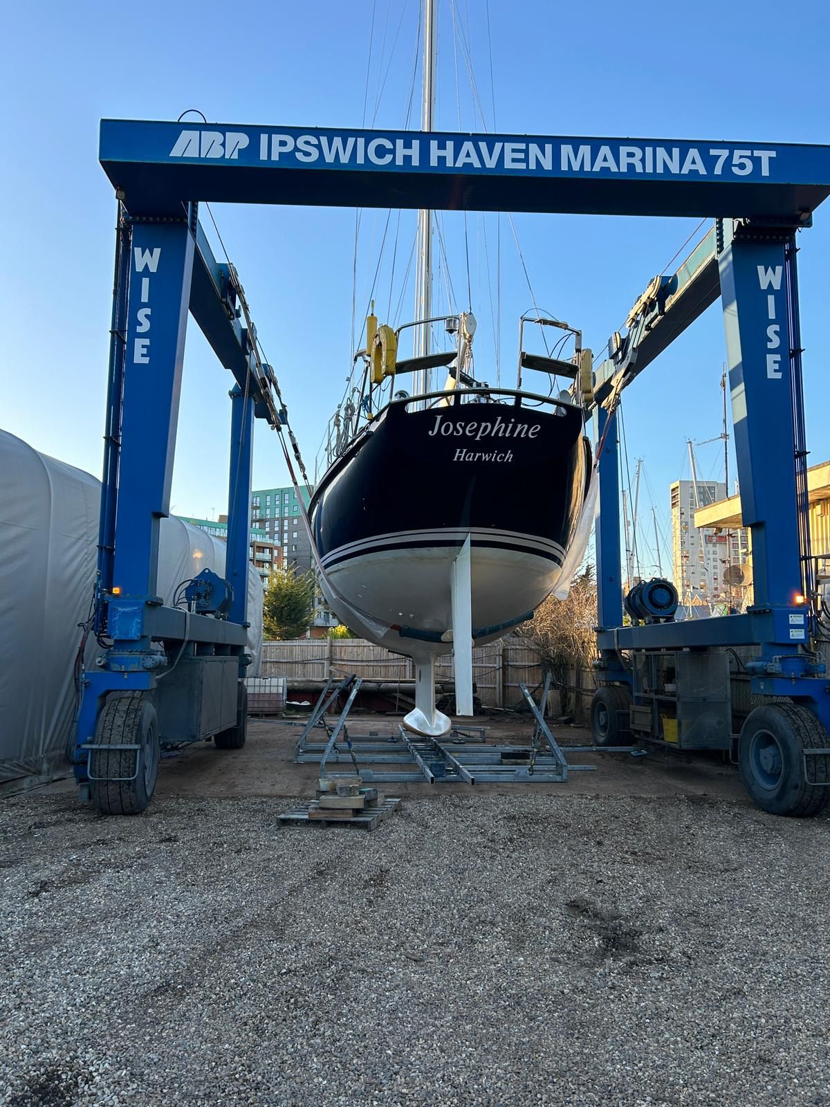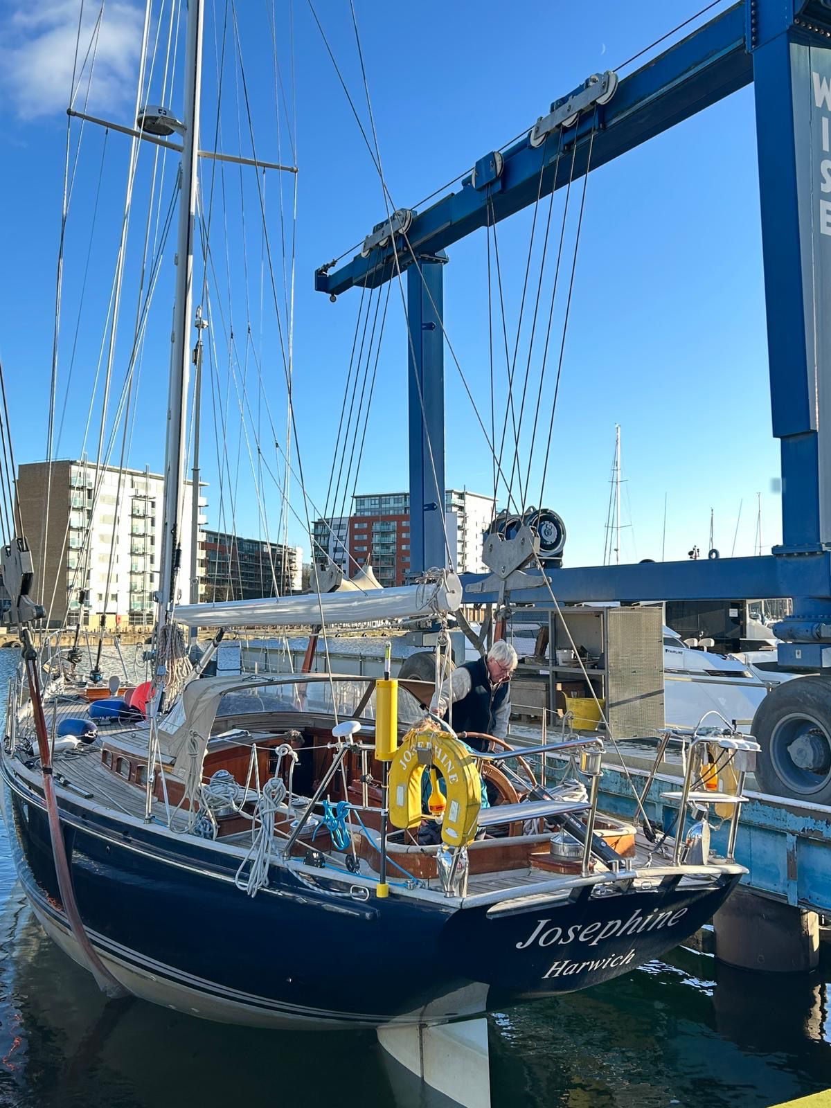 Josephine has been out of the water in our Ipswich yard for some routine maintenance, we have also discovered and repaired some areas of rot in the forward cabin. It has now become apparent she is in need of a new engine, so the engineering team will have their work cut out.