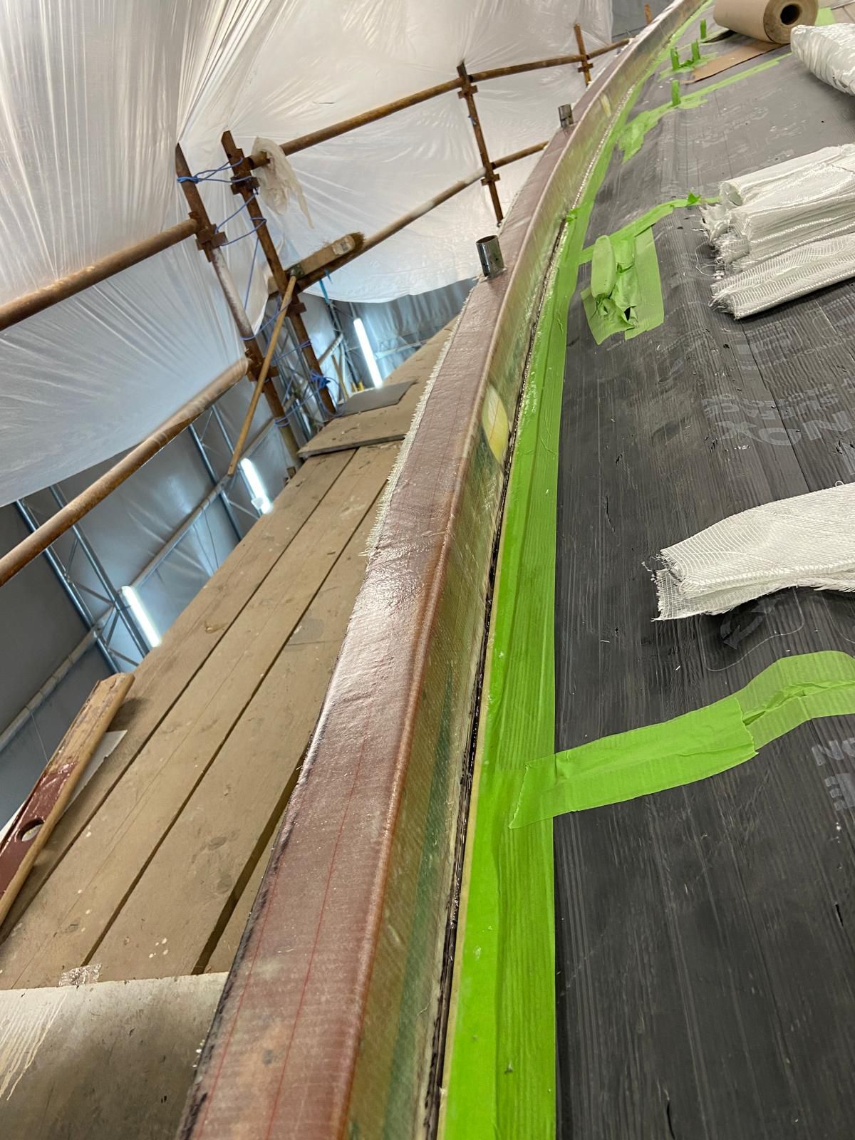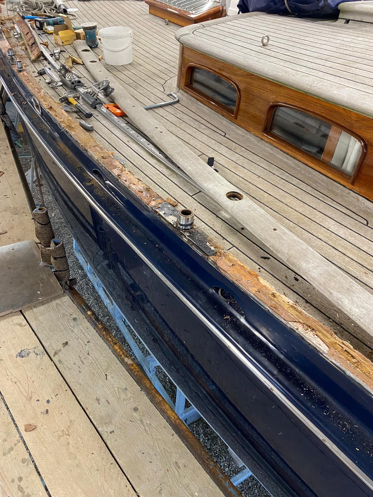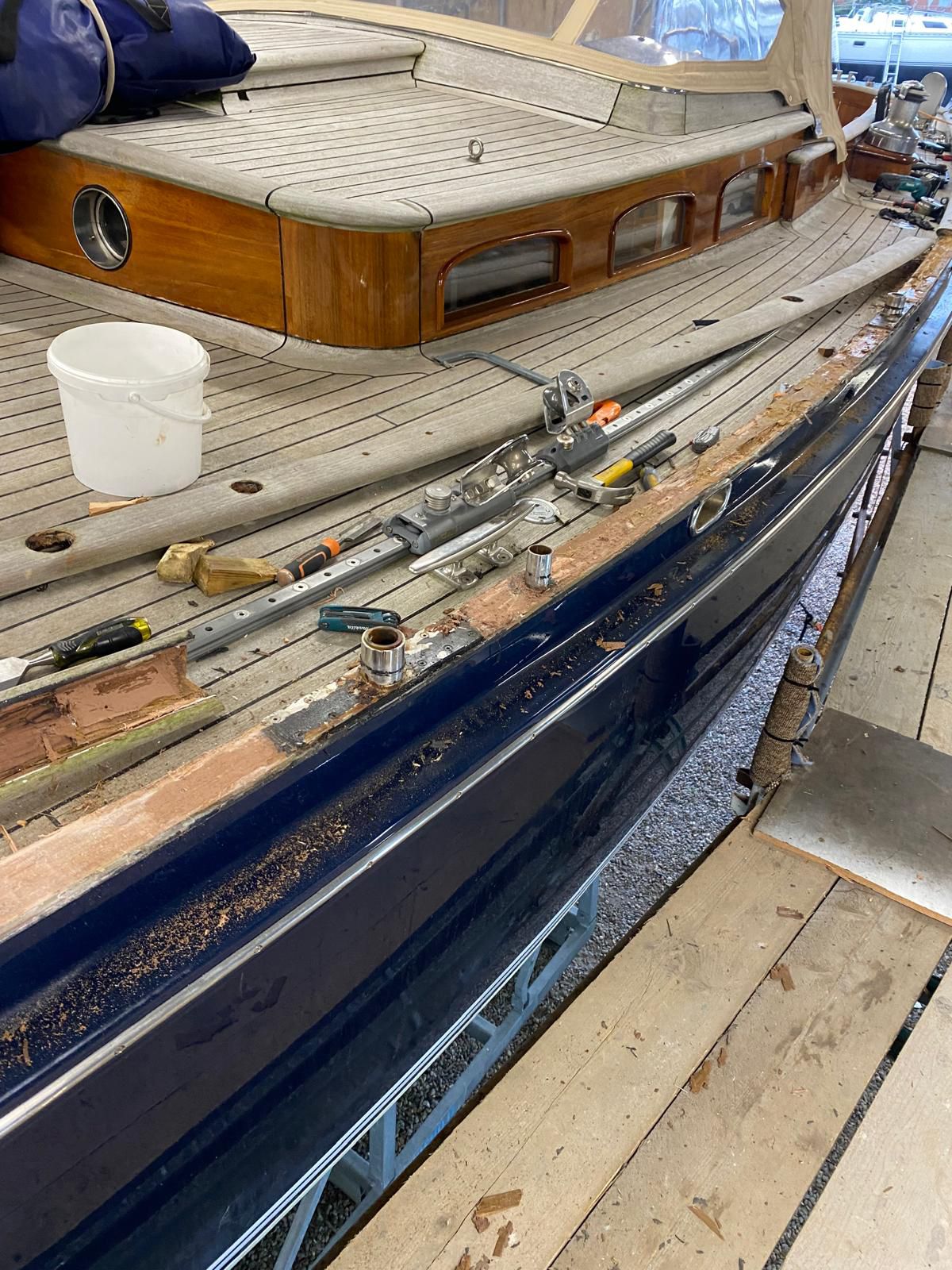 After another visit to HMS for a mini refit Josephine is now back afloat being enjoyed and used by her owners. We had to carry out a number of repairs including a damaged rubbing strake.