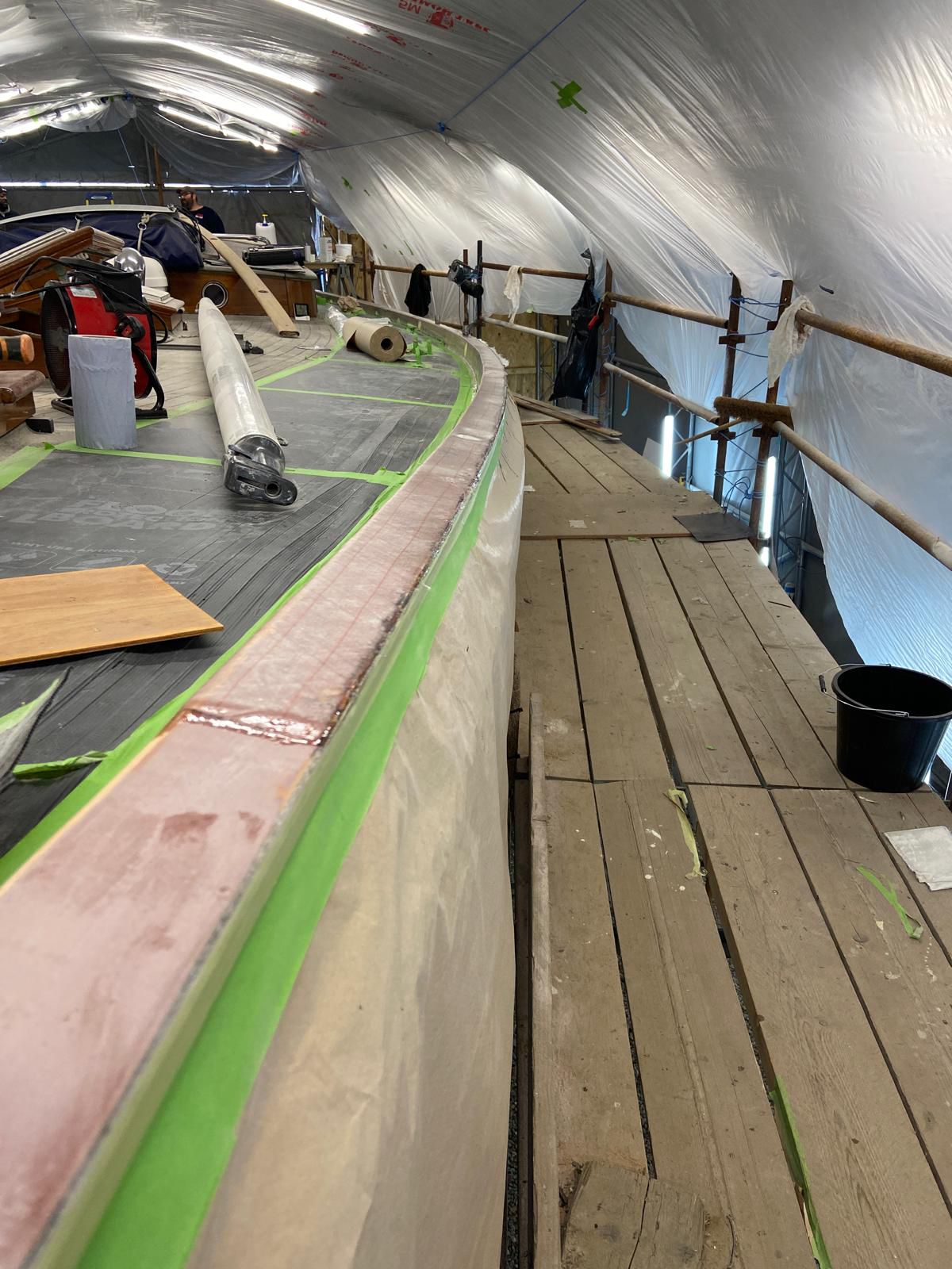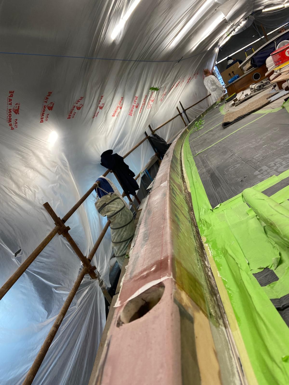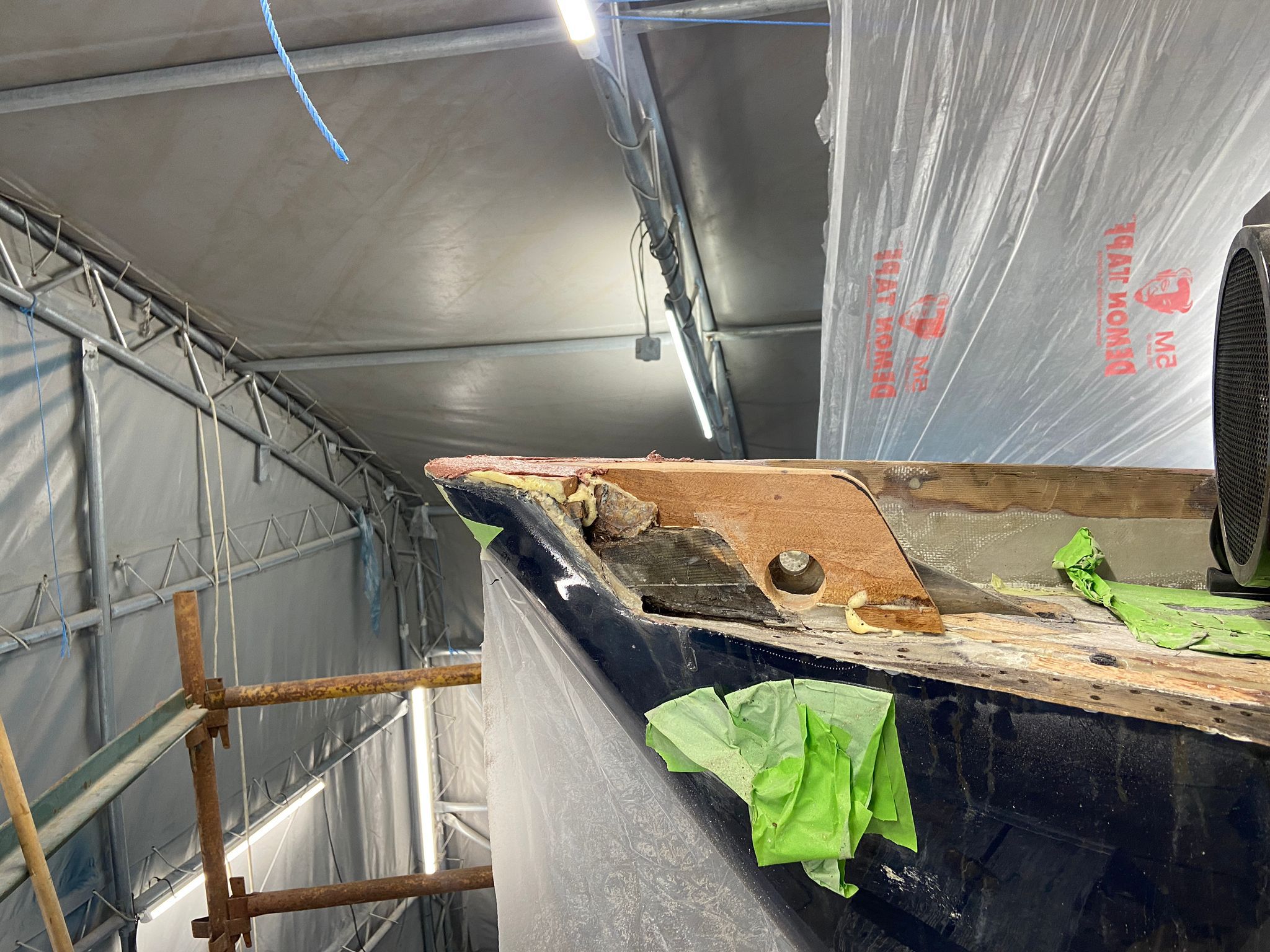 After another visit to HMS for a mini refit Josephine is now back afloat being enjoyed and used by her owners. We had to carry out a number of repairs including a damaged rubbing strake.