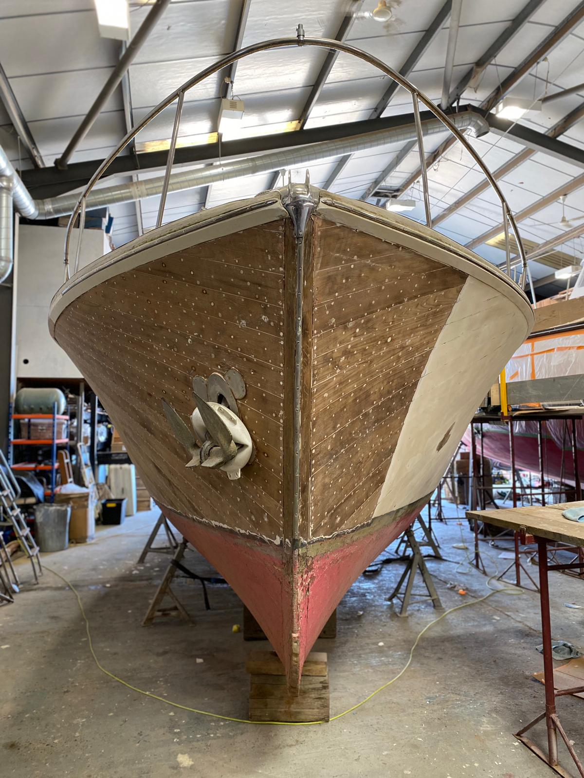 She spent the winter of 2018/19 in the boatshed being worked on. At the end of June 2019 she left HMS and headed back to the Thames (photo 5, 6 & 7) and in July she went to the Thames Traditional Boat Festival and to our delight was awarded The Bates Wheel, (photo 8,9,10 & 11) for the best restoration, maintenance and presentation of a craft built at the bates yard.(photo 12)