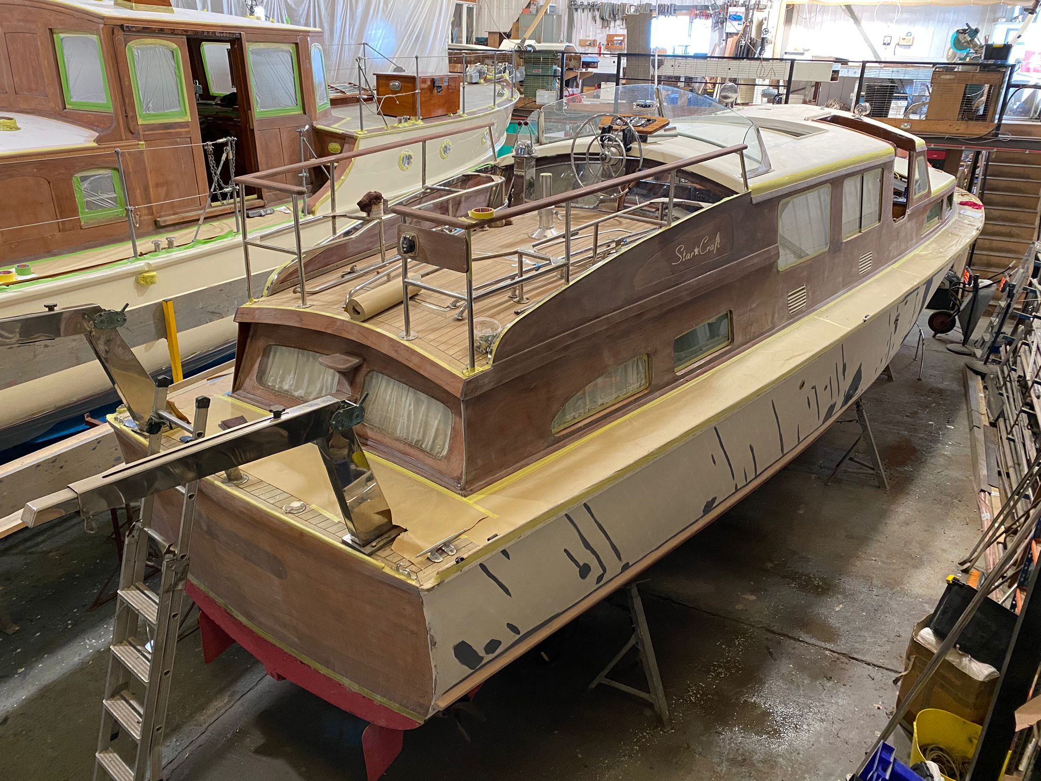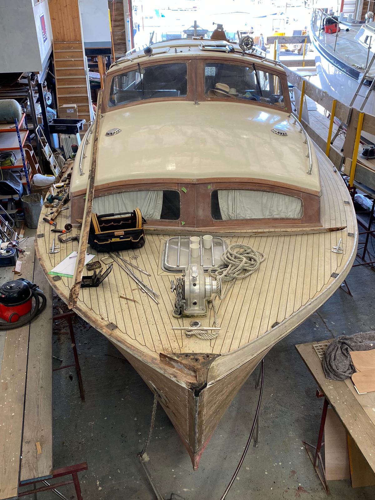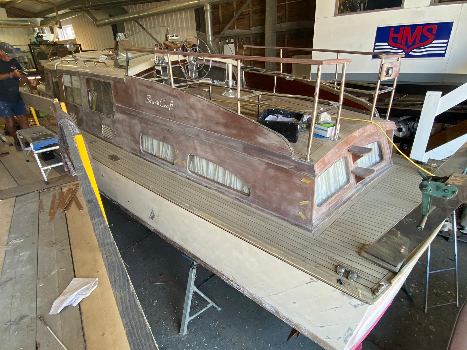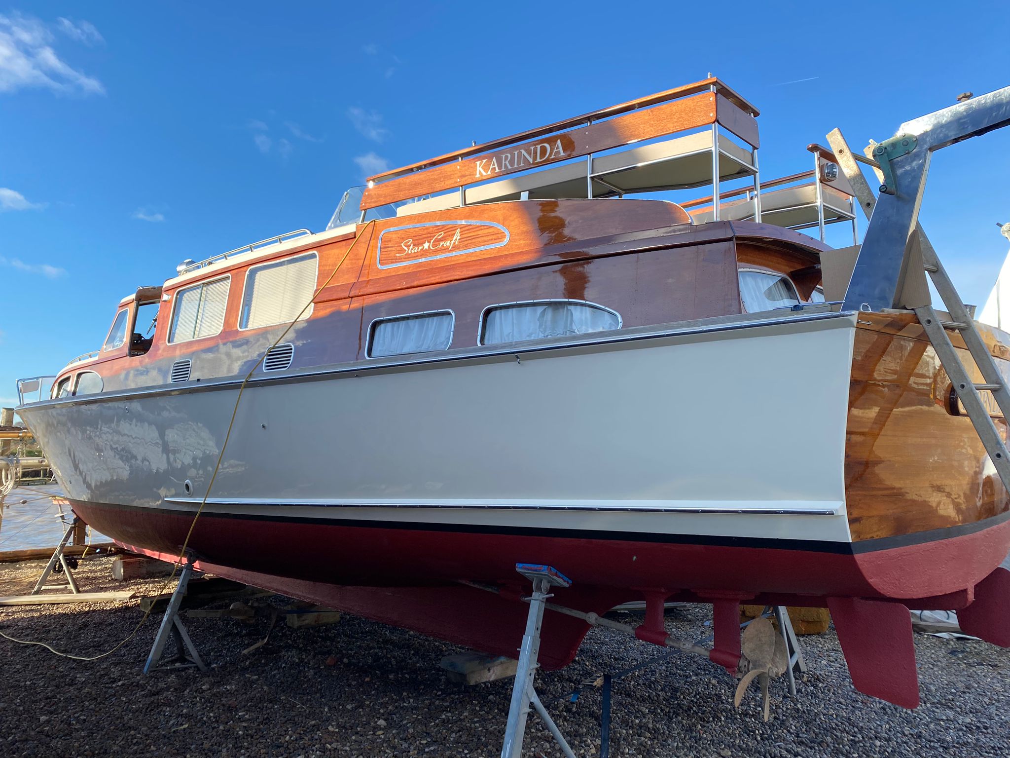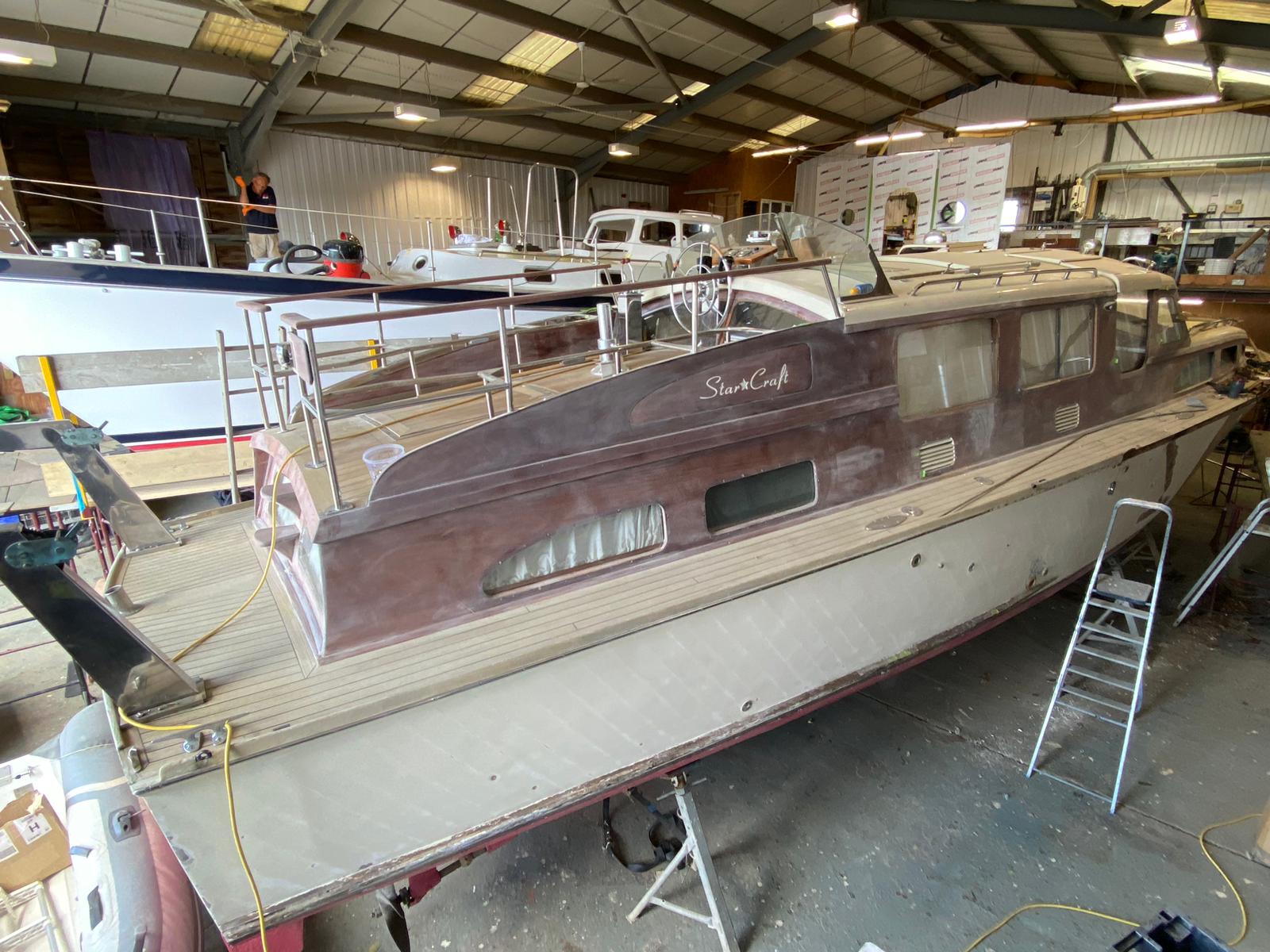 Karinda is a fine example of a 40ft Bates Starcraft, she came to HMS for some fairly extensive improvements to the superstructure and a new aft deck steering position and seating area.