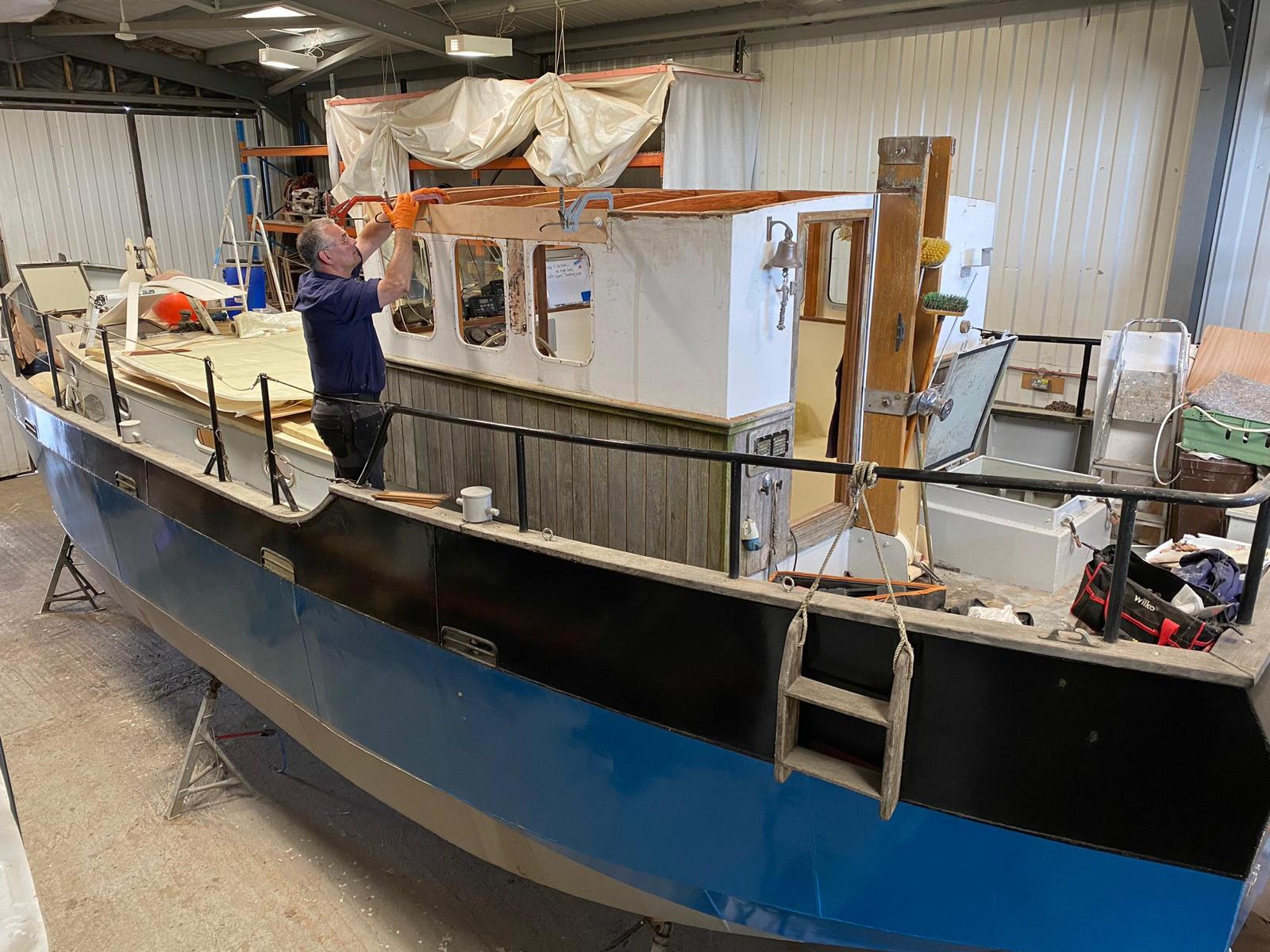 Little Charly is a steel boat, she has come to HMS for an internal fit out and new wheelhouse roof.
