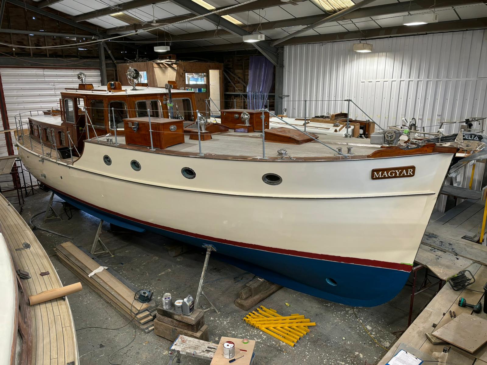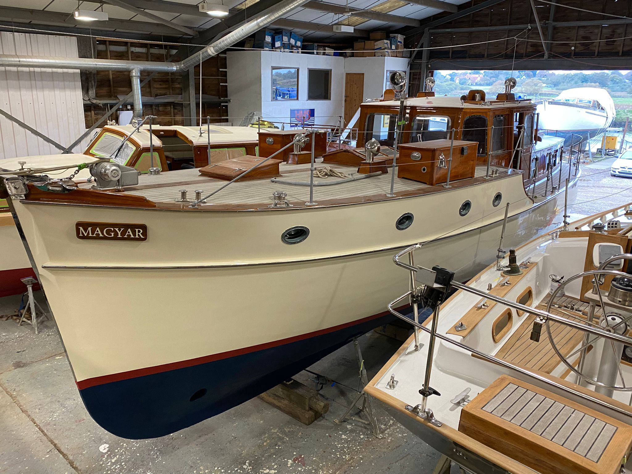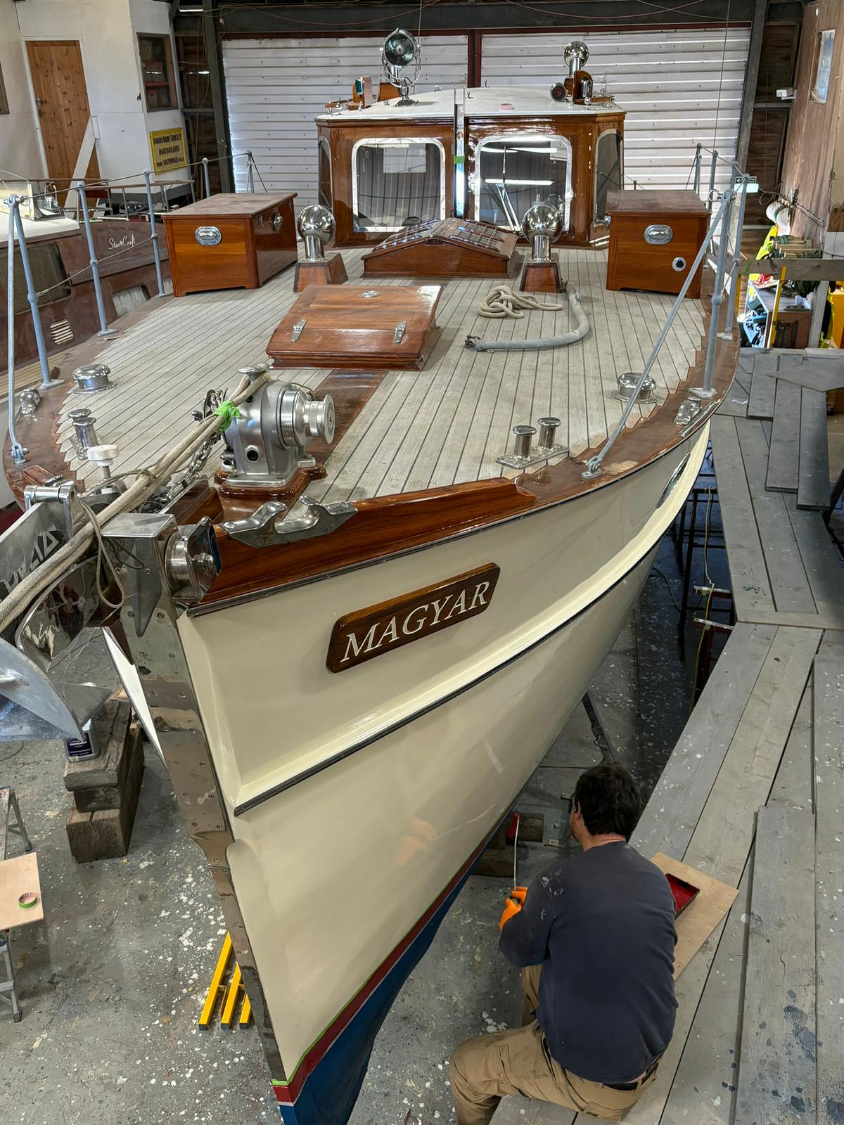 Magyar has become somewhat of a flagship restoration for HMS and a beautiful example of what can be achieved. She is currently back in the boat shed for some minor jobs before heading off to explore the waterways of Holland.