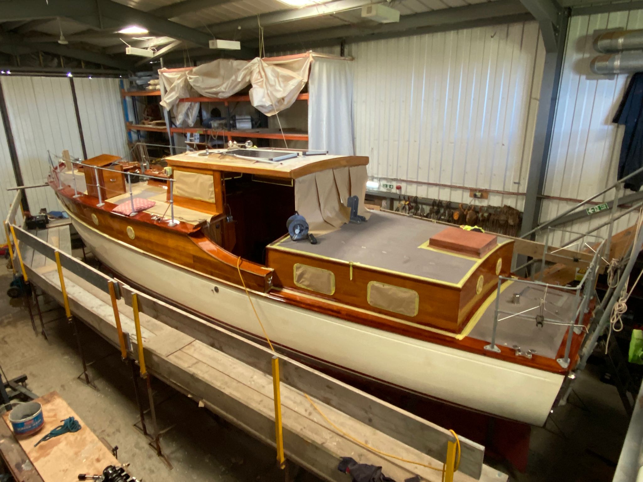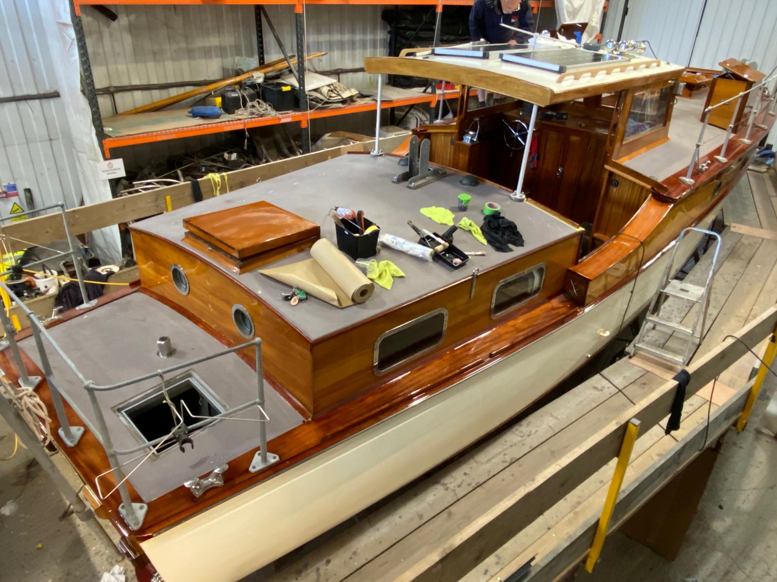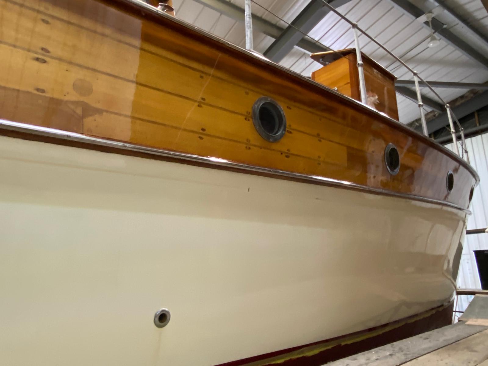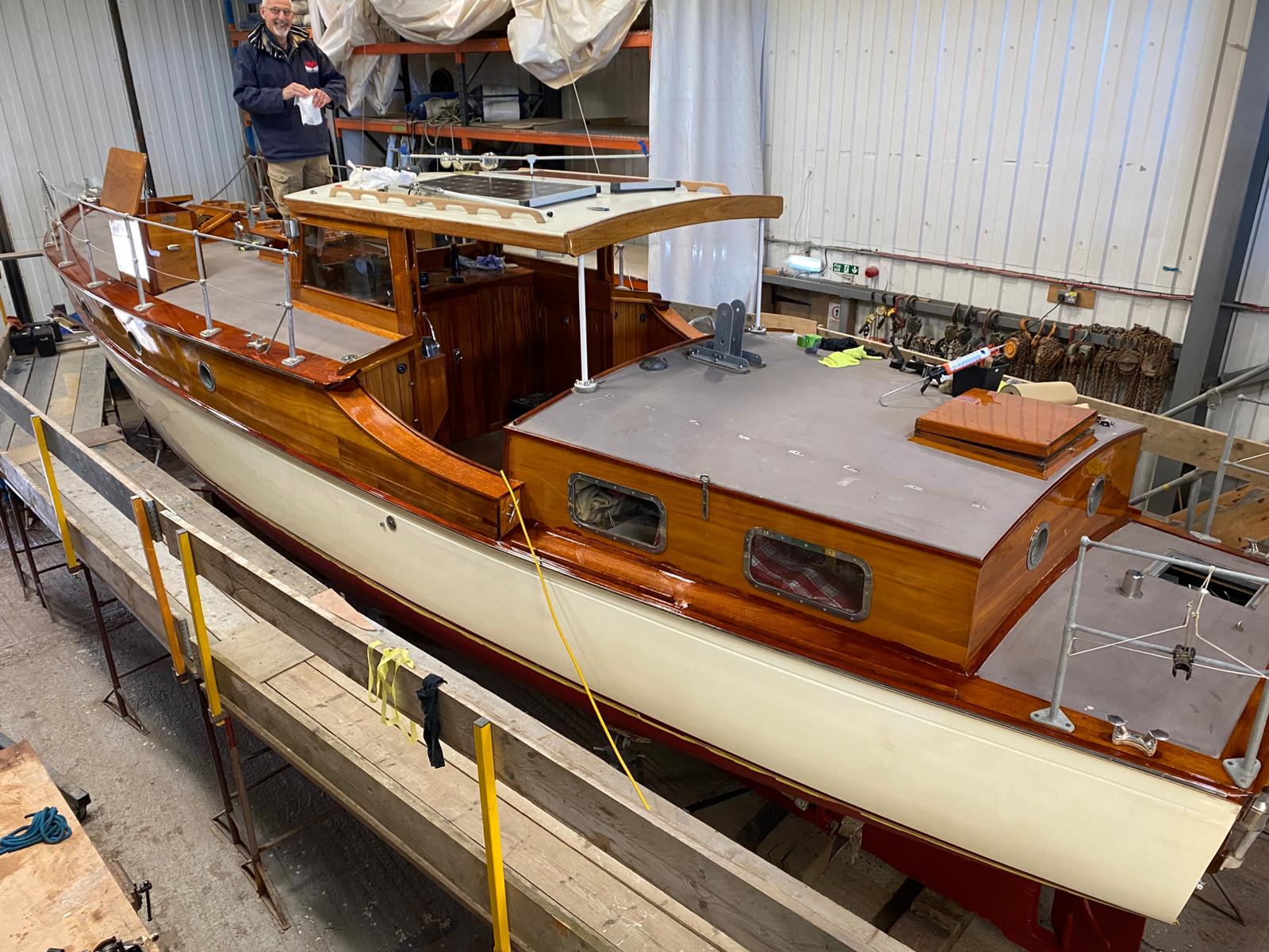 With the refreshed varnishing and painting completed Mero made her way by road transport to Henley on Thames for the Thames Traditional Boat Festival. The sun shone and she looked beautiful in this iconic location. After many years enjoyment the current owners have decided to sell her as they are buying a boat which is more suited to their future needs. She is currently being sold through www.sandemanyachtcompany.co.uk