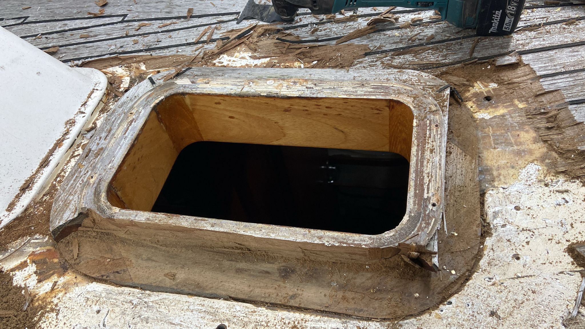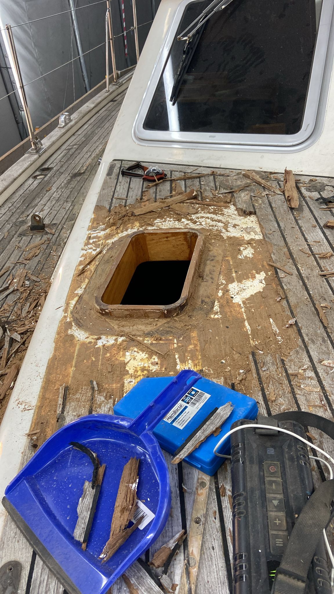 The task of removing the old deck fittings and hatches has begun before we start removing the decks.