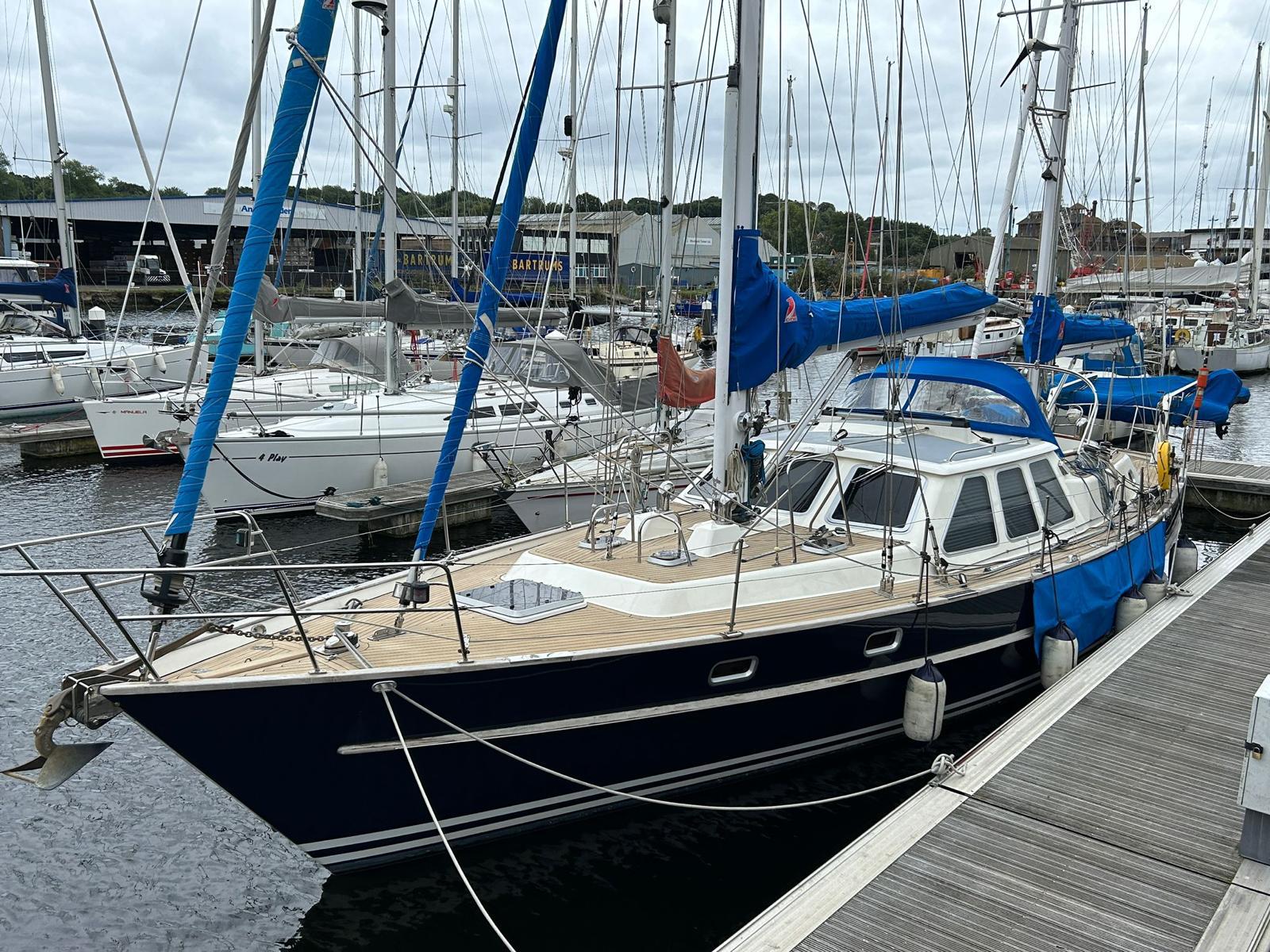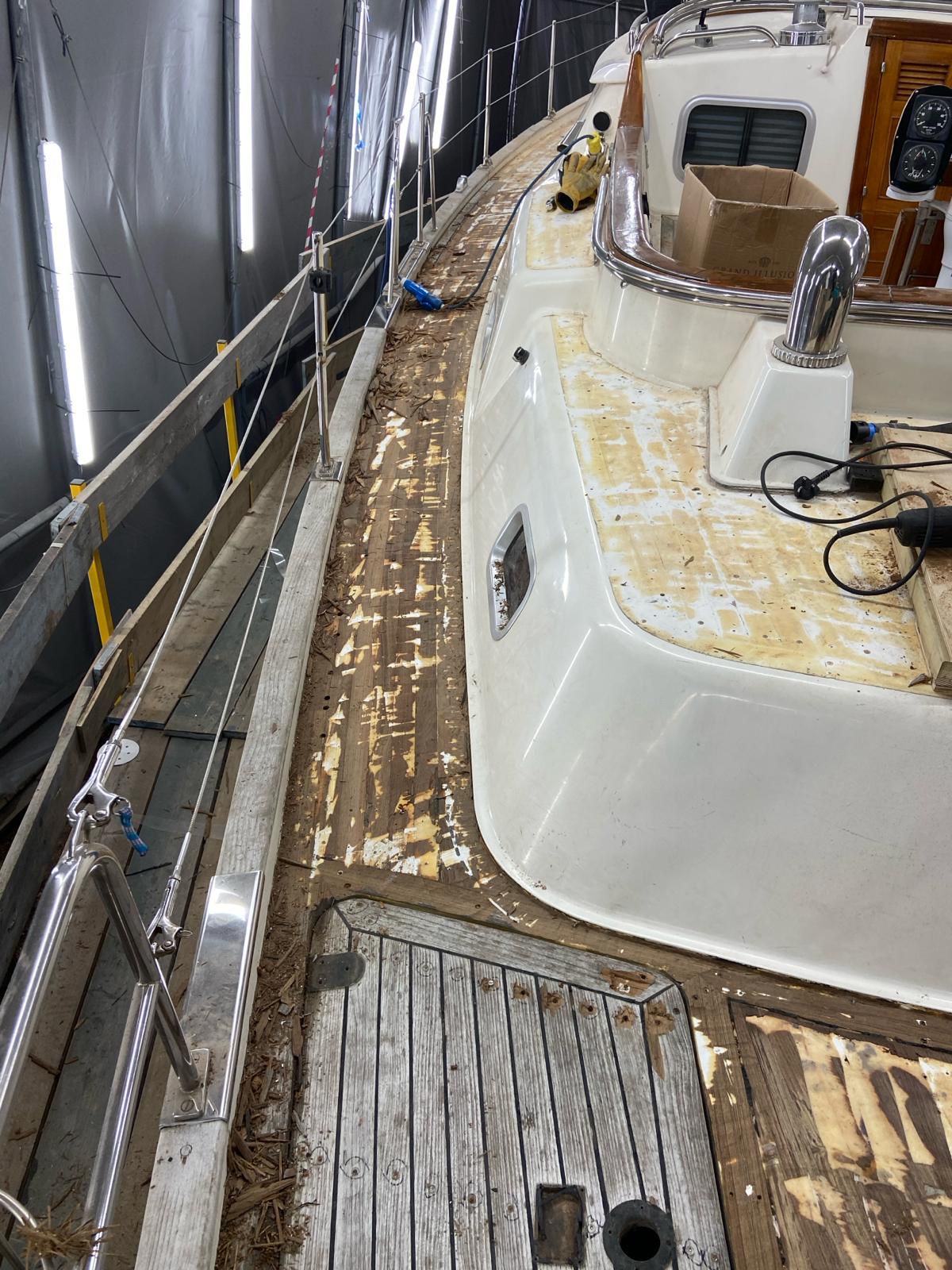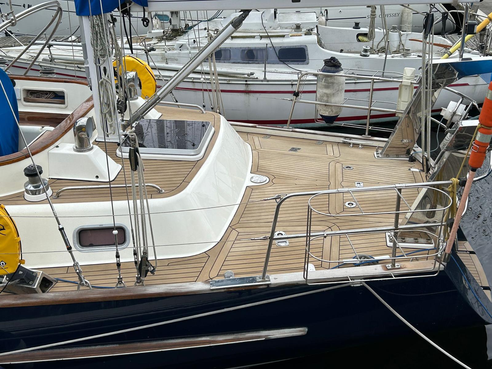 Oysterama is an Oyster 49 she has come in for the removal of all deck fittings and a new flexi teak simulated teak deck along with numerous other items.