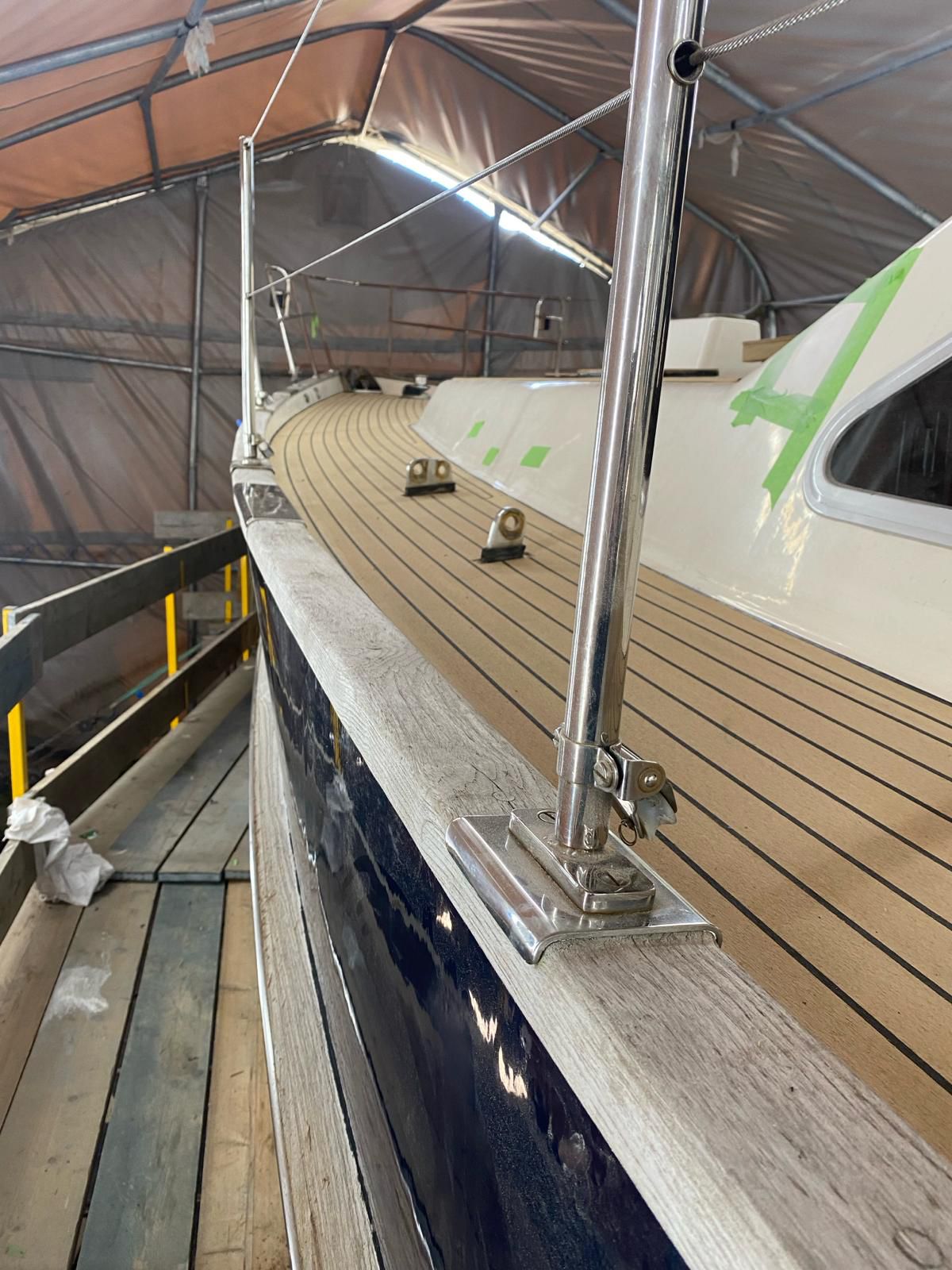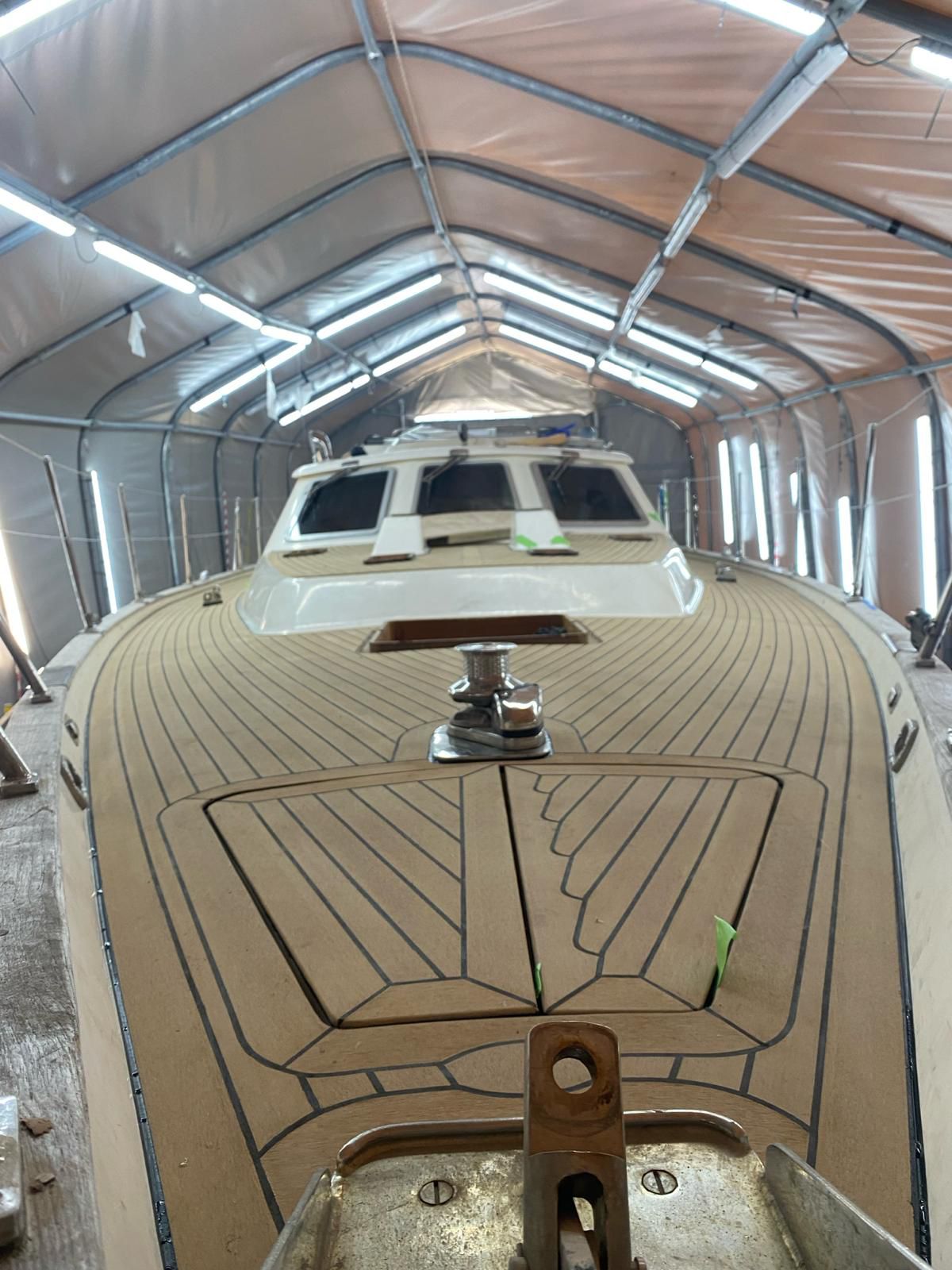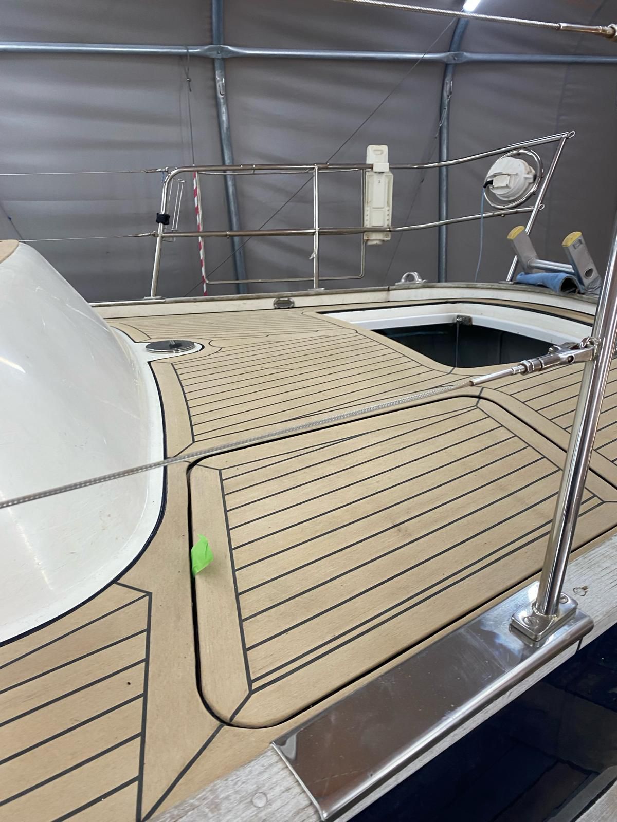 Oysterama is an Oyster 49 she has come in for the removal of all deck fittings and a new flexi teak simulated teak deck along with numerous other items.