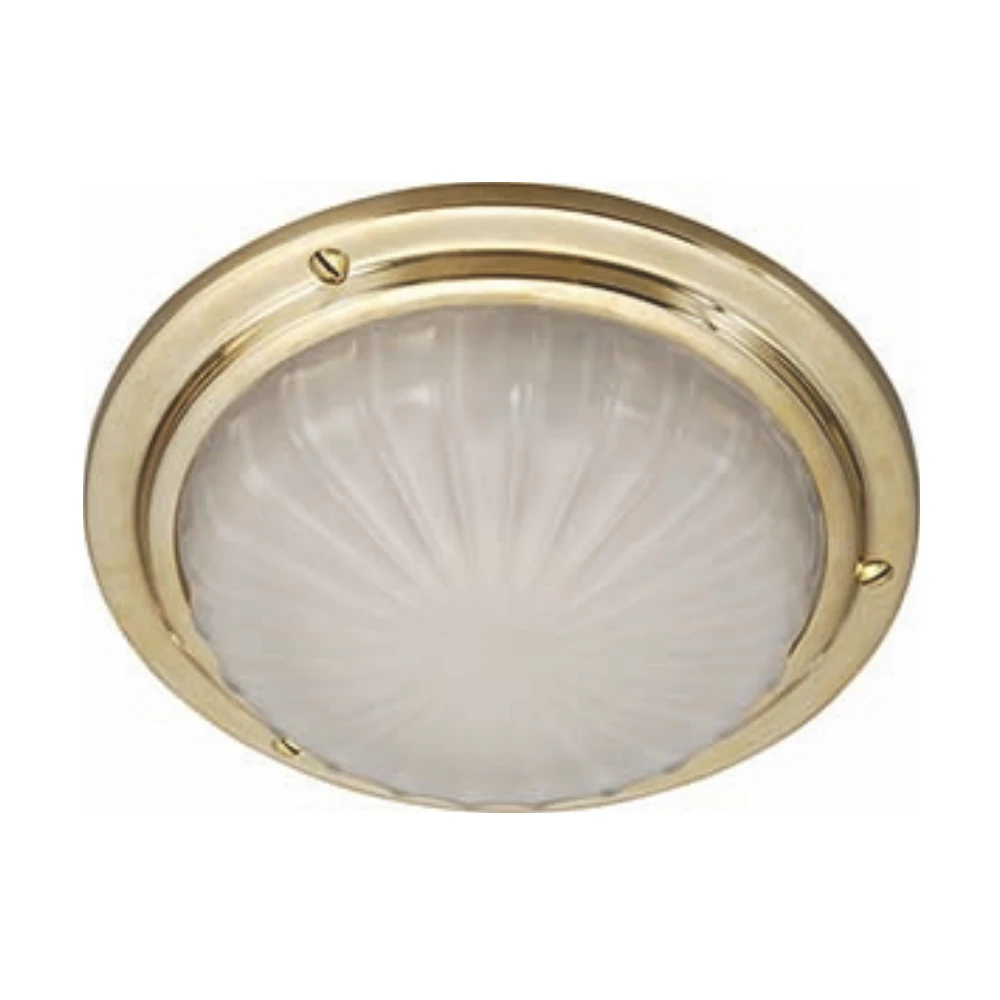 This low profile version is ideal for when headroom is restricted as it has a projection of only 1 1/2″ (40mm), which is a 3/4″ (18mm) less than the standard light. To achieve this a flat stainless steel base is utlised which is concealed by the same brass bezel and glass as above. Fitted warm white 1651m, No switch. Brass and chrome versions.