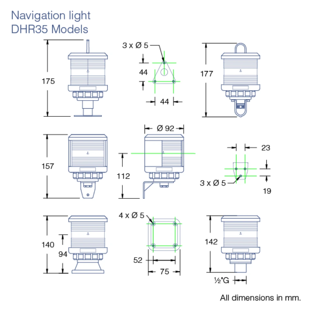 | DHR/RW35V | All round/Anchor Light Black Base Mount |