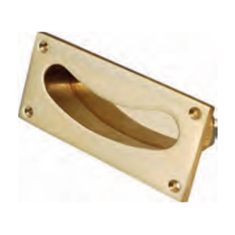 Flush sliding door fitting – “mouth” shaped opening – finished in brass or chrome