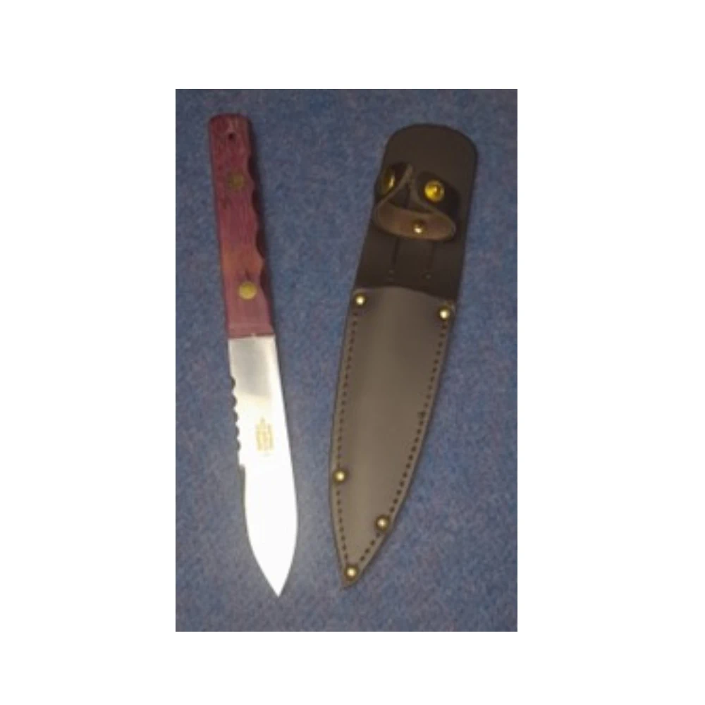 Green River Knife with 5″ steel blade and hardwood handle and leather sheath