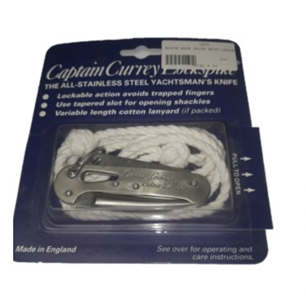 Lockspike Bosuns Mate Knife with 55mm stainless steel blade and locking spike, has a shackle key slot., comes with lanyard.