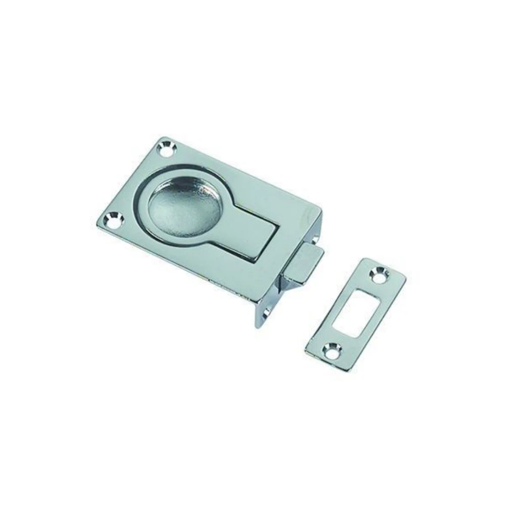 Rectangular Flush ring with generous recess to allow finger access measures 57 x 40mm and finished in Brass or Chrome