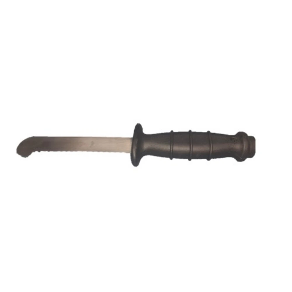 Sailing Safety Knife with serrated blade and hook to prevernt slipping while cutting – Light plastic handle.