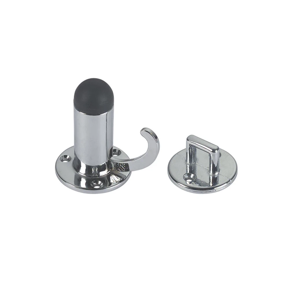 Door stop with rubber buffer. Hook automatically holds the door in the open position. (Heavy Duty)