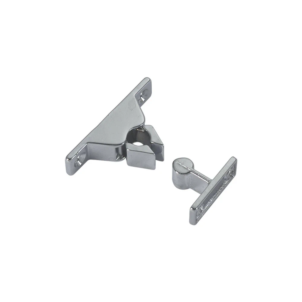 Spring loaded jaws catch and hold the stem to secure the door in the open position. Available in brass or chrome finish.