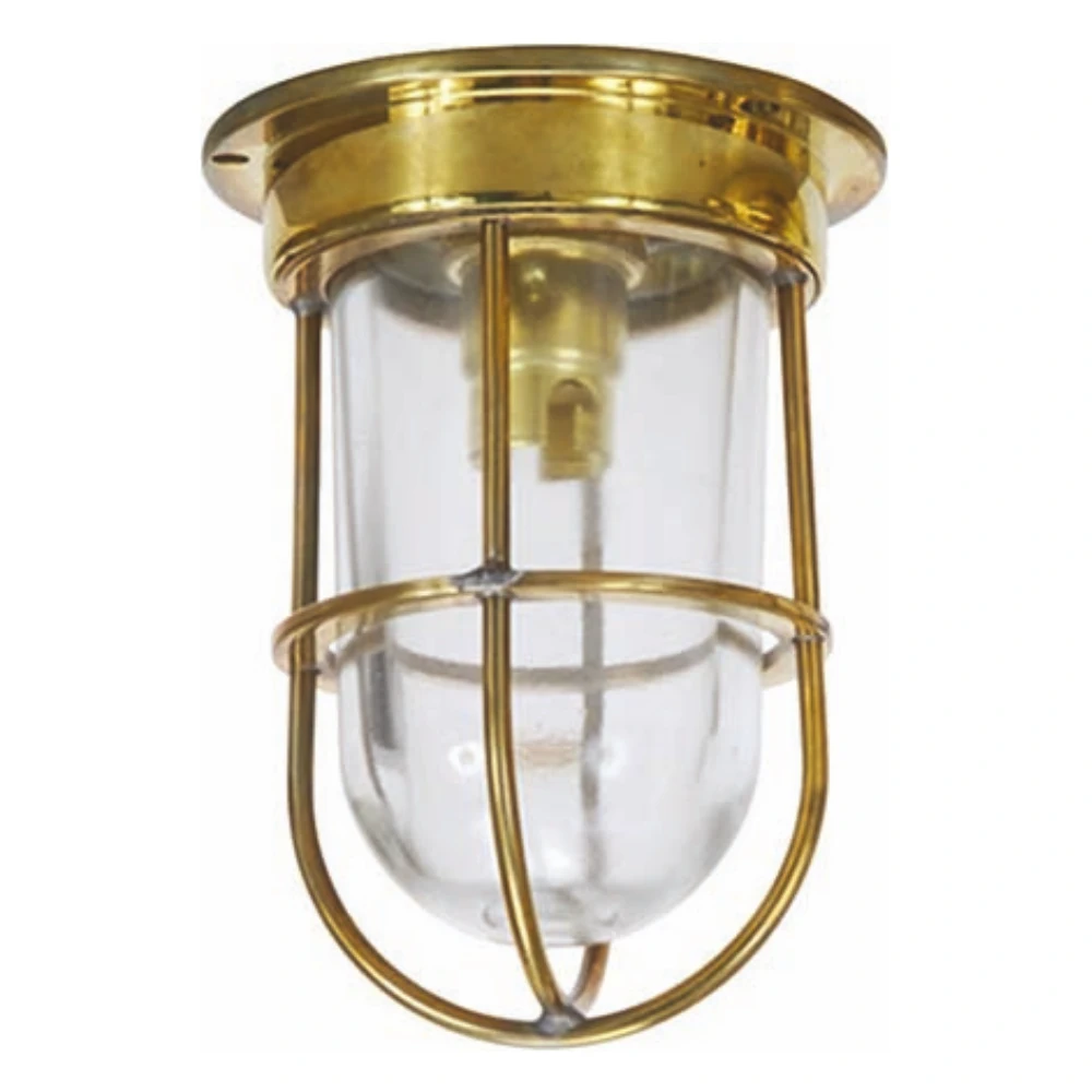 This traditional light is of all brass construction with a polished finish. The strong guard screws onto a seal in the base and protects the clear glass.