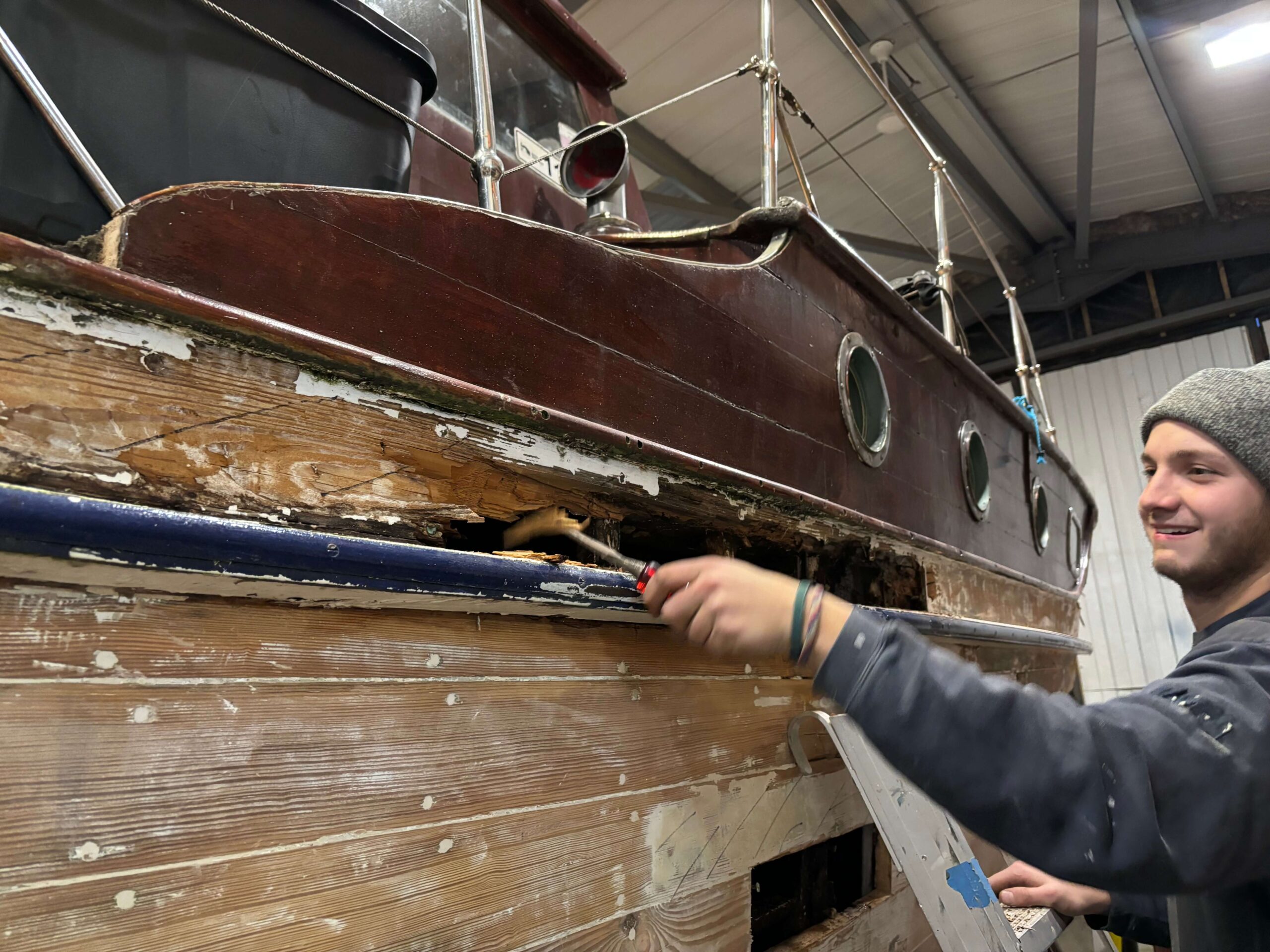 The forward deck has been removed and the planking is being replaced.