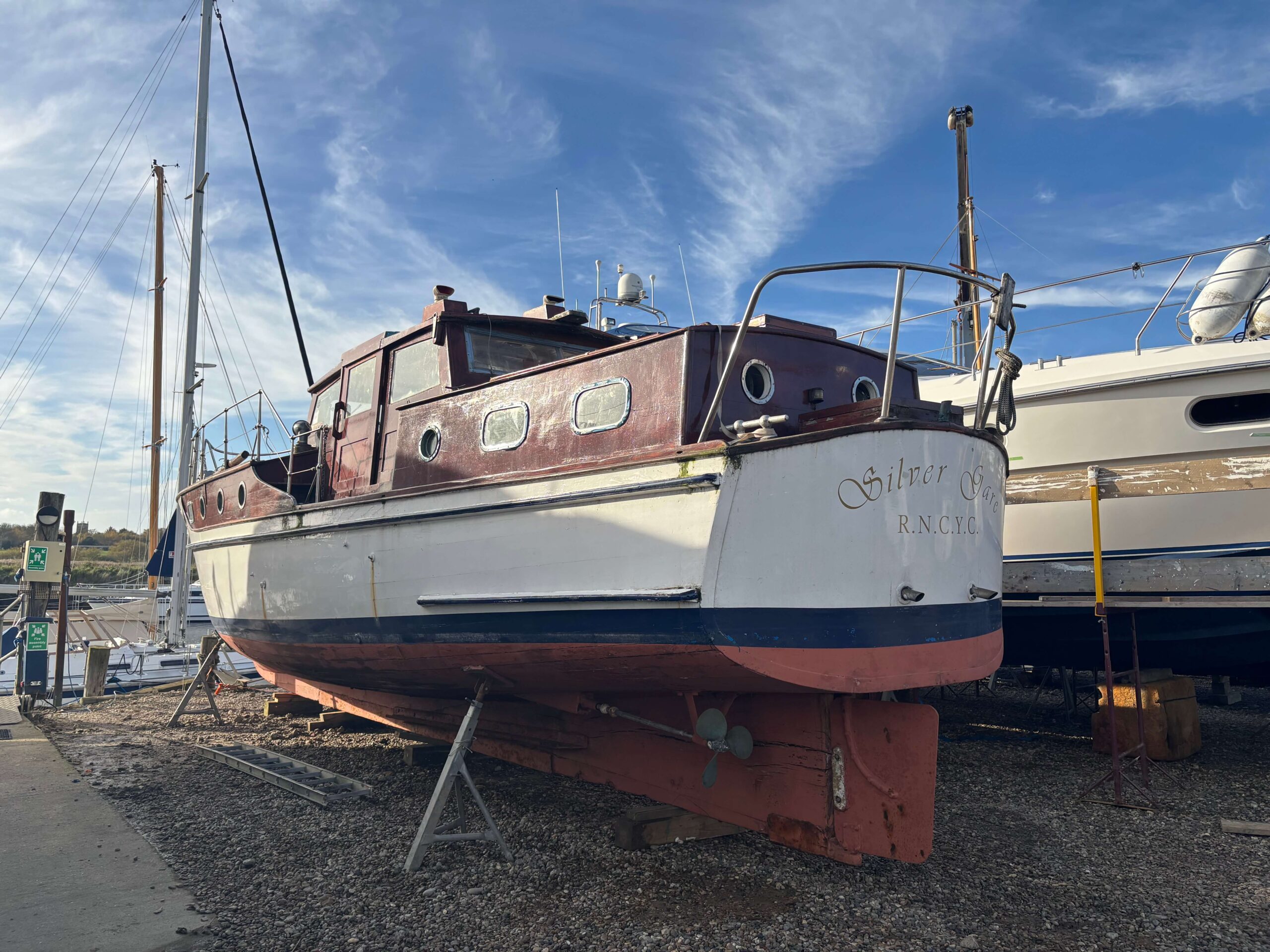 Since this time Silvergare has spent the majority of her life cruising Scottish waters. She has had one major refit in her lifetime and has now come to HMS following a significant period of time out of the water for some major hull repairs and a new deck.