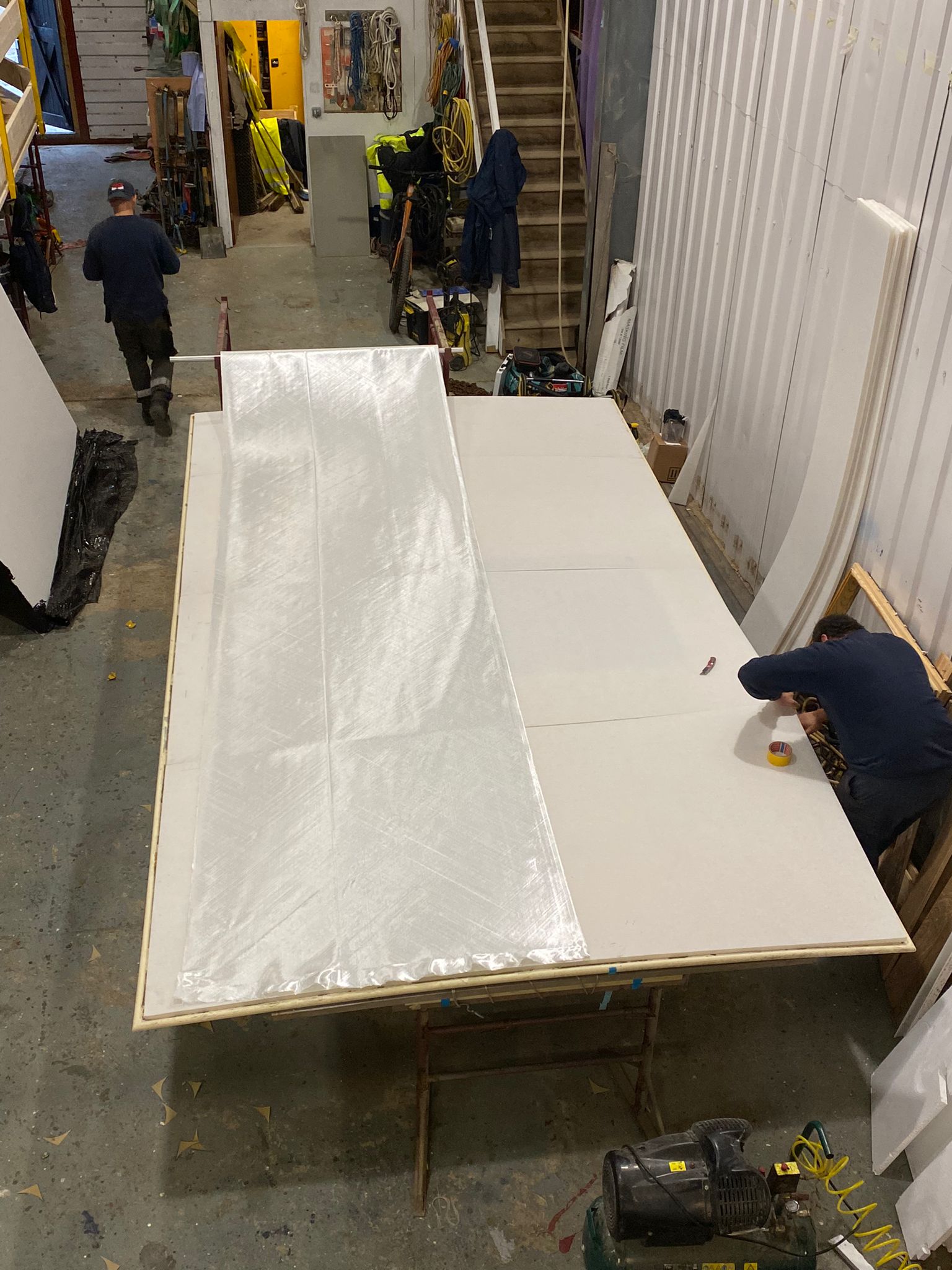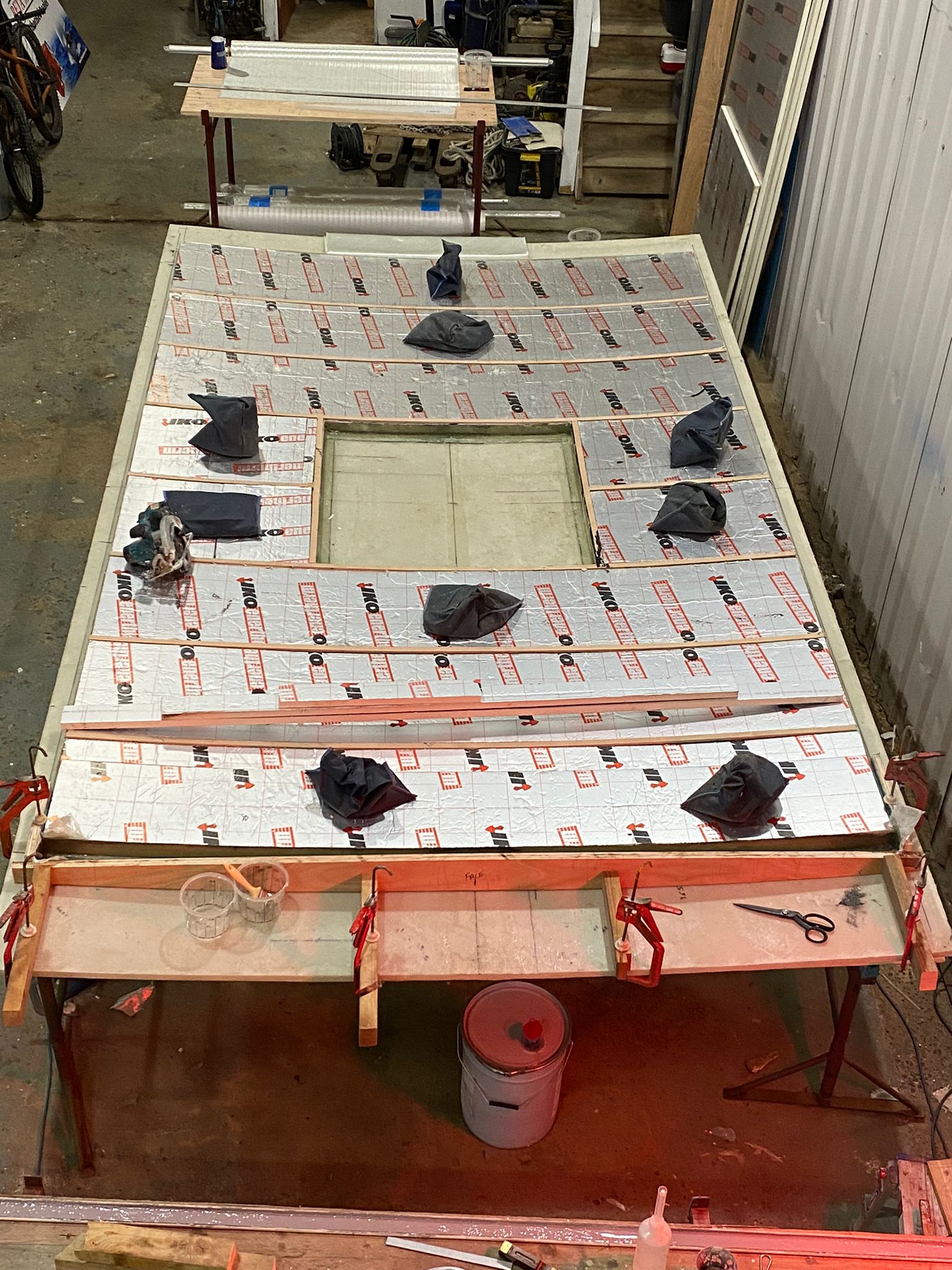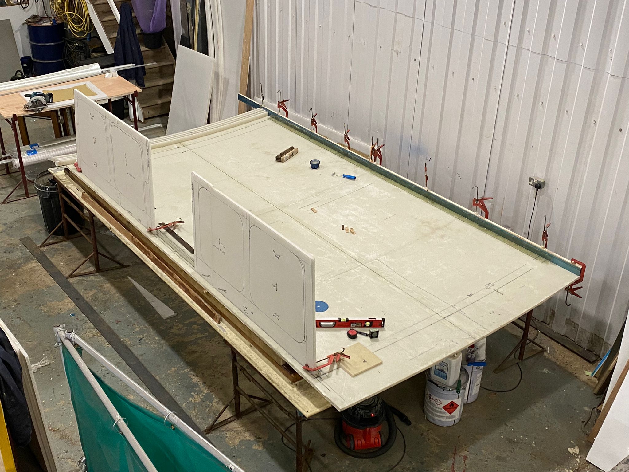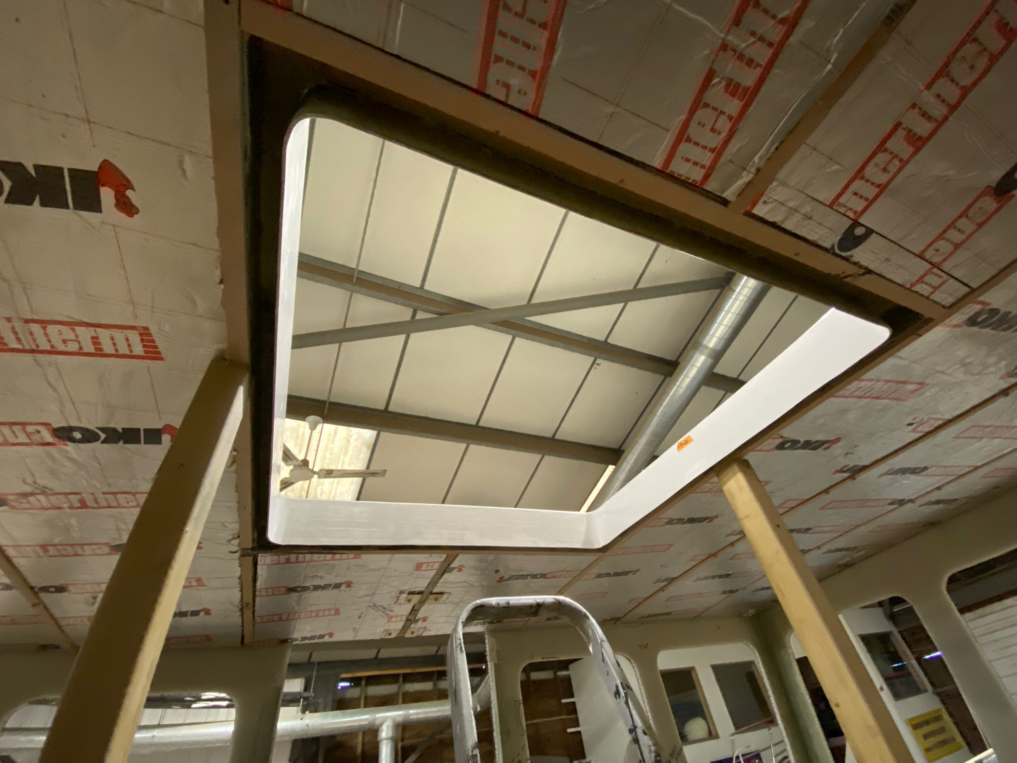 The new wheelhouse is being built using Thermhex sheet, layers of biaxall cloth, ply and resin, it is great watching it start to take shape. We had to do a mock up initially to see how it would look.