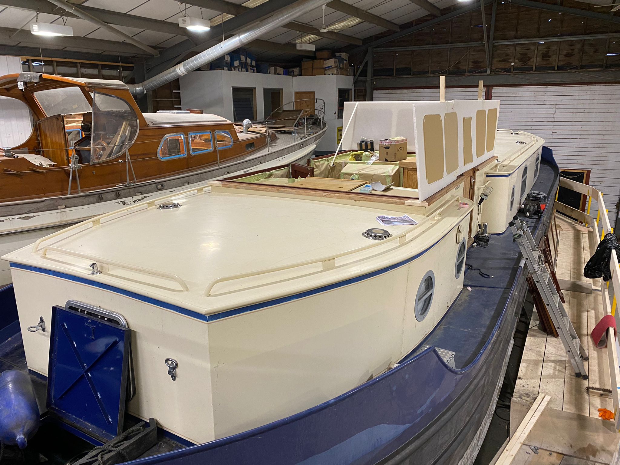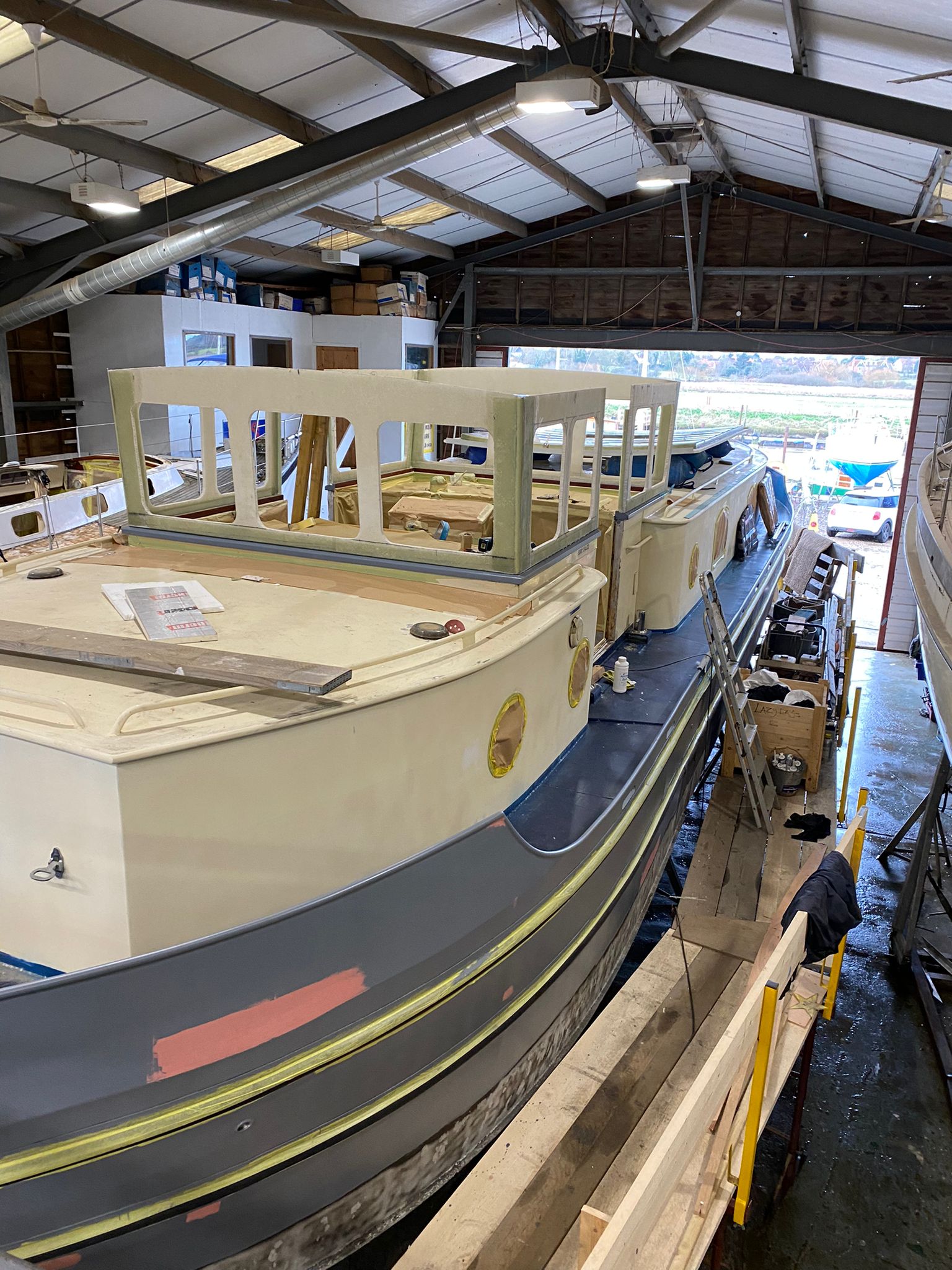 TARA is a 57ft wide beam Sea Otter she has come to HMS for a mini refit and the fabrication of a custom built wheelhouse.